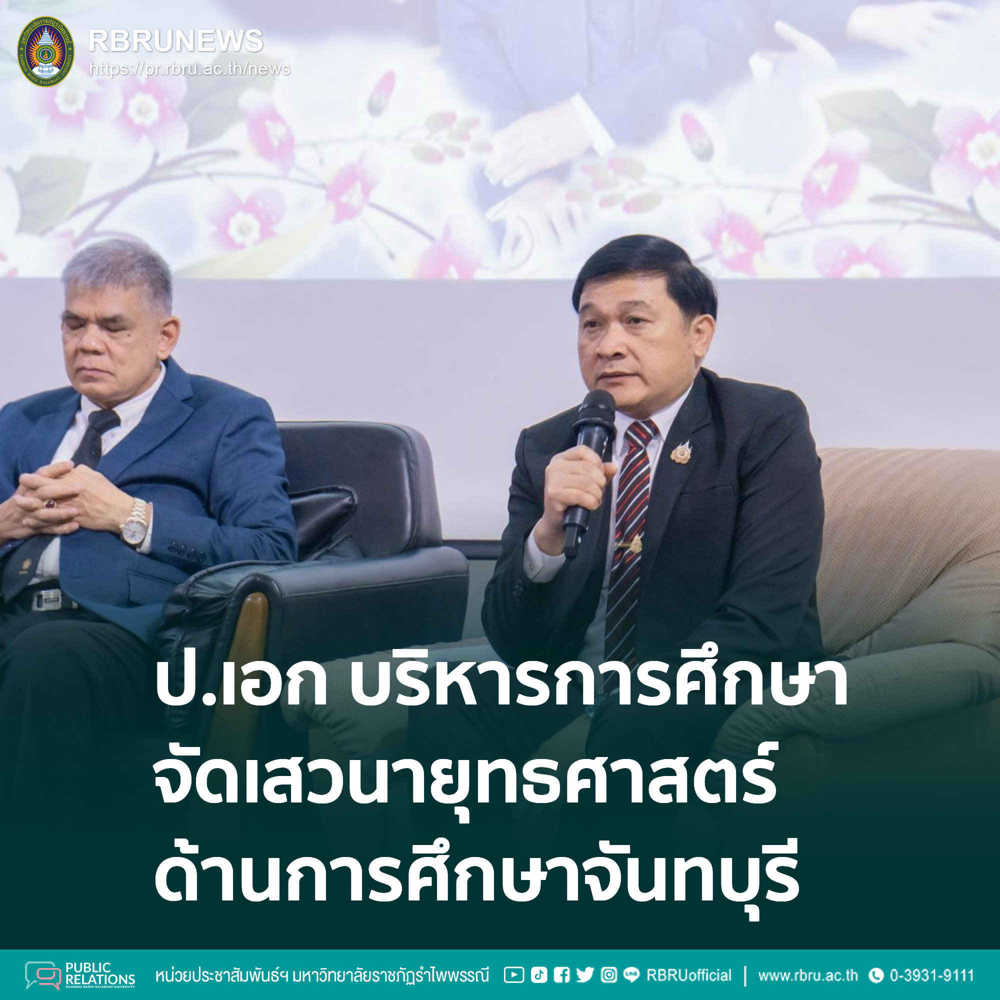 หลักสูตรปรัชญาดุษฎีบัณฑิต สาขาวิชาการบริหารการศึกษา คณะครุศาสตร์ จัดการเสวนาวิชาการ การขับเคลื่อน นโยบายและยุทธศาสตร์การศึกษาสู่การปฏิบัติตามบริบทของพื้นที่จังหวัดจันทบุรี เพื่อการดำเนินแนวทางและองค์ความรู้ทางด้านการศึกษาร่วมกัน