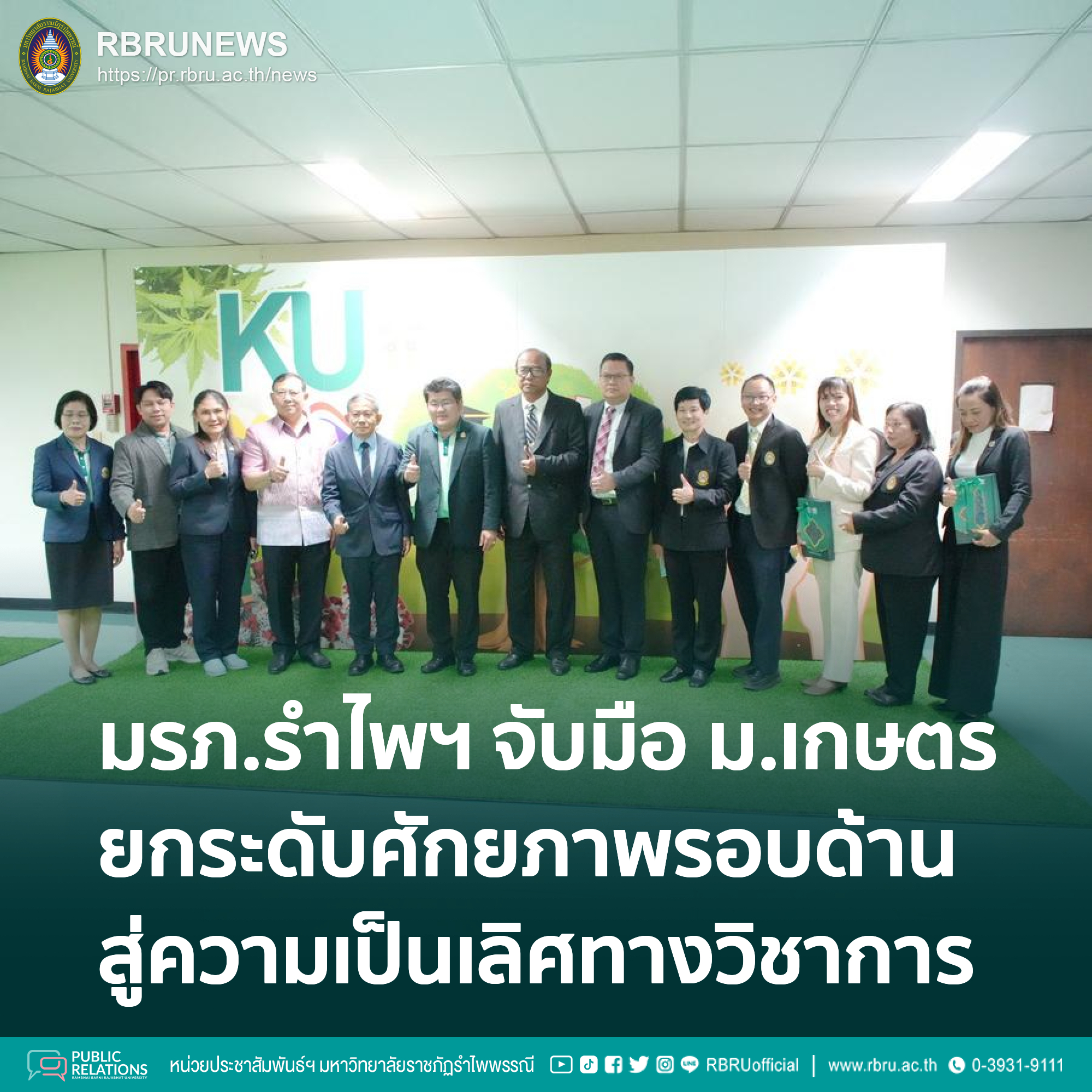 ที่ห้องประชุม 9 ชั้น 2 อาคารสารนิเทศ 50 ปี มหาวิทยาลัยเกษตรศาสตร์ บางเขน พลเอกวุฒินันท์ ลีลายุทธ นายกสภามหาวิทยาลัยราชภัฏรำไพพรรณี และผู้ช่วยศาสตราจารย์ไวกูณฑ์ ทองอร่าม อธิการบดี มหาวิทยาลัยราชภัฏรำไพพรรณี พร้อมด้วยคณะผู้บริหาร ร่วมประชุมหารือความร่วมมือกับมหาวิทยาลัยเกษตรศาสตร์ (มก.) ซึ่งการประชุมครั้งนี้ คณะผู้บริหาร มรภ.รำไพพรรณี ได้พบปะและหารือกับคณะผู้บริหาร มก. นำโดย ดร.กฤษณพลศ์ กีรติกร นายกสภามหาวิทยาลัยเกษตรศาสตร์ เพื่อแสวงหาแนวทางความร่วมมือในหลากหลายด้านที่เป็นประโยชน์ต่อทั้งสองสถาบัน โดยเฉพาะอย่างยิ่งในสาขา เกษตรศาสตร์ ผลไม้ อาหาร ประมง การพัฒนาชุมชน คาร์บอนเครดิต และปัญญาประดิษฐ์ ซึ่งเป็นจุดแข็งของทั้งสองมหาวิทยาลัย