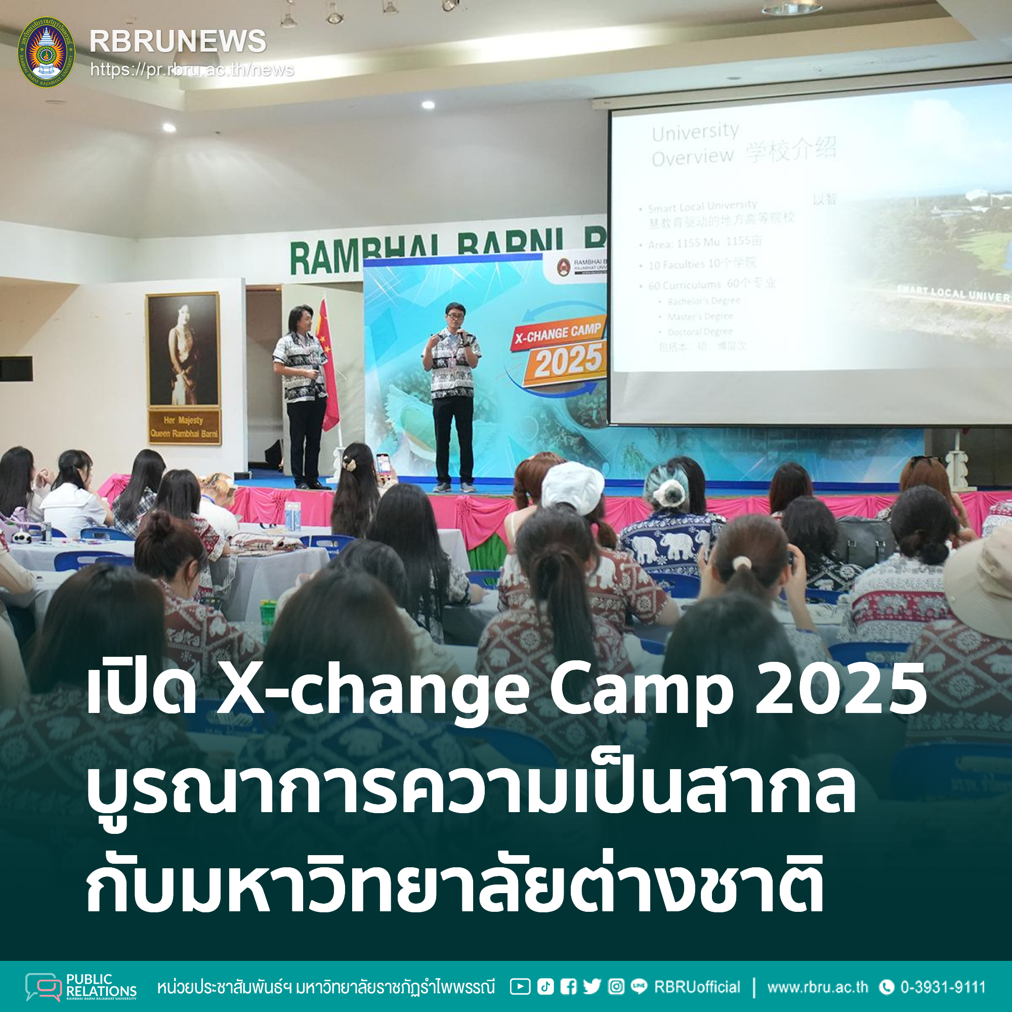 มหาวิทยาลัยราชภัฏรำไพพรรณี (ม.รำไพฯ) เปิดฉากโครงการสำคัญ "ค่ายแลกเปลี่ยนเพื่อความเป็นสากลกับมหาวิทยาลัยเครือข่ายต่างประเทศ (International X-change Camp 2025)" อย่างเป็นทางการเมื่อวันที่ 24 เมษายน 2568 ณ มหาวิทยาลัยราชภัฏรำไพพรรณี โดยมี ผู้ช่วยศาสตราจารย์ ดร. สวัสดิ์ชัย ศรีพนมธนากร รองอธิการบดี ปฏิบัติราชการแทนอธิการบดี ให้เกียรติเป็นประธานในพิธีเปิด