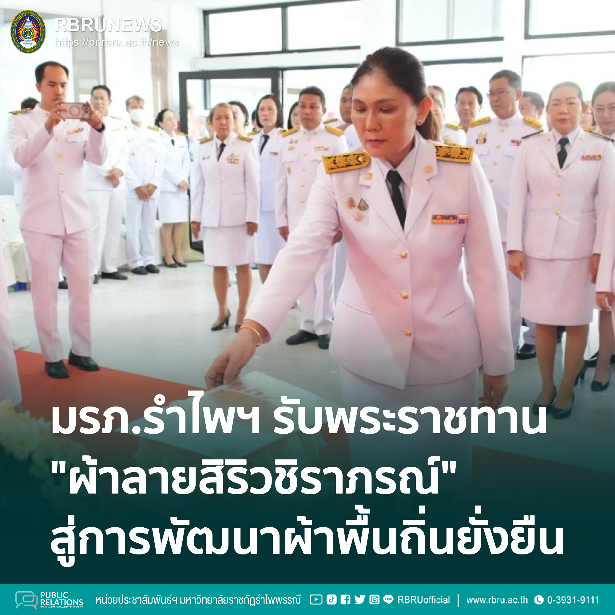 มหาวิทยาลัยราชภัฏรำไพพรรณี นำโดยสำนักศิลปวัฒนธรรมฯ รับมอบแบบลายผ้าพระราชทาน "ผ้าลายสิริวชิราภรณ์" ยกระดับผลิตภัณฑ์ผ้าพื้นถิ่นและหัตถกรรม ตอบสนองวิสัยทัศน์แห่งการเป็นแหล่งความรู้ สร้างสรรค์นวัตกรรม นำสู่การพัฒนาท้องถิ่นที่ยั่งยืน
