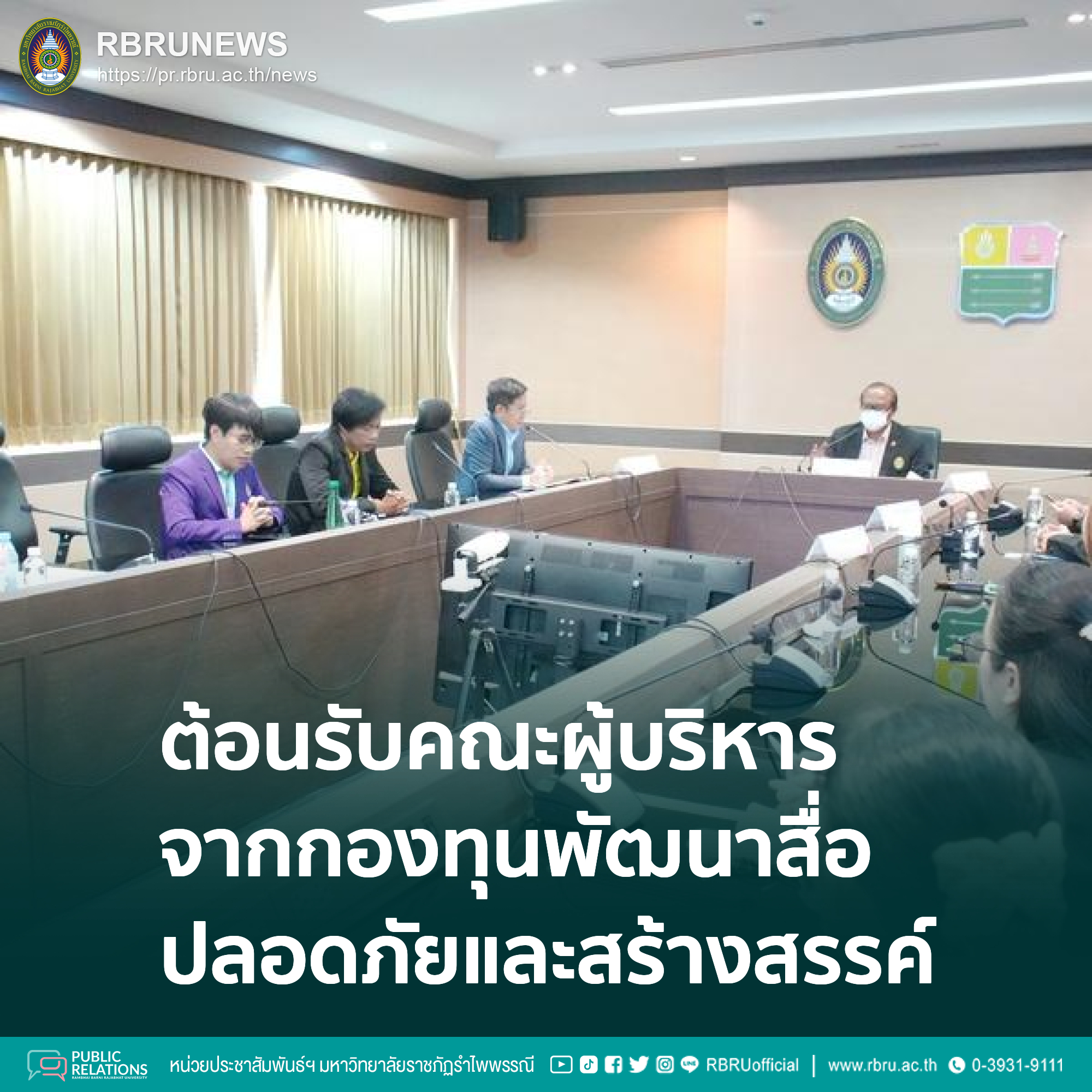 เมื่อวันที่ 2 พฤษภาคม 2568 ณ ห้องประชุมลานสน ชั้น 7 อาคารสำนักงานอธิการบดี (อาคาร 36) มหาวิทยาลัยราชภัฏรำไพพรรณี ผู้ช่วยศาสตราจารย์ไวกูณฑ์ ทองอร่าม อธิการบดี พร้อมด้วยอาจารย์ ดร.ภูริพัฒน์ แก้วตาธนวัฒนา คณบดีคณะนิเทศศาสตร์ และคณะผู้บริหาร ได้ให้การต้อนรับคณะทำงานจากกองทุนพัฒนาสื่อปลอดภัยและสร้างสรรค์ นำโดย ดร.ชำนาญ งามมณีอุดม รองผู้จัดการกองทุนฯ และนางสาวพัชรพร พงษ์ทัดศิริกุล ผู้อำนวยการฝ่ายส่งเสริมการรู้เท่าทันและเฝ้าระวังสื่อ