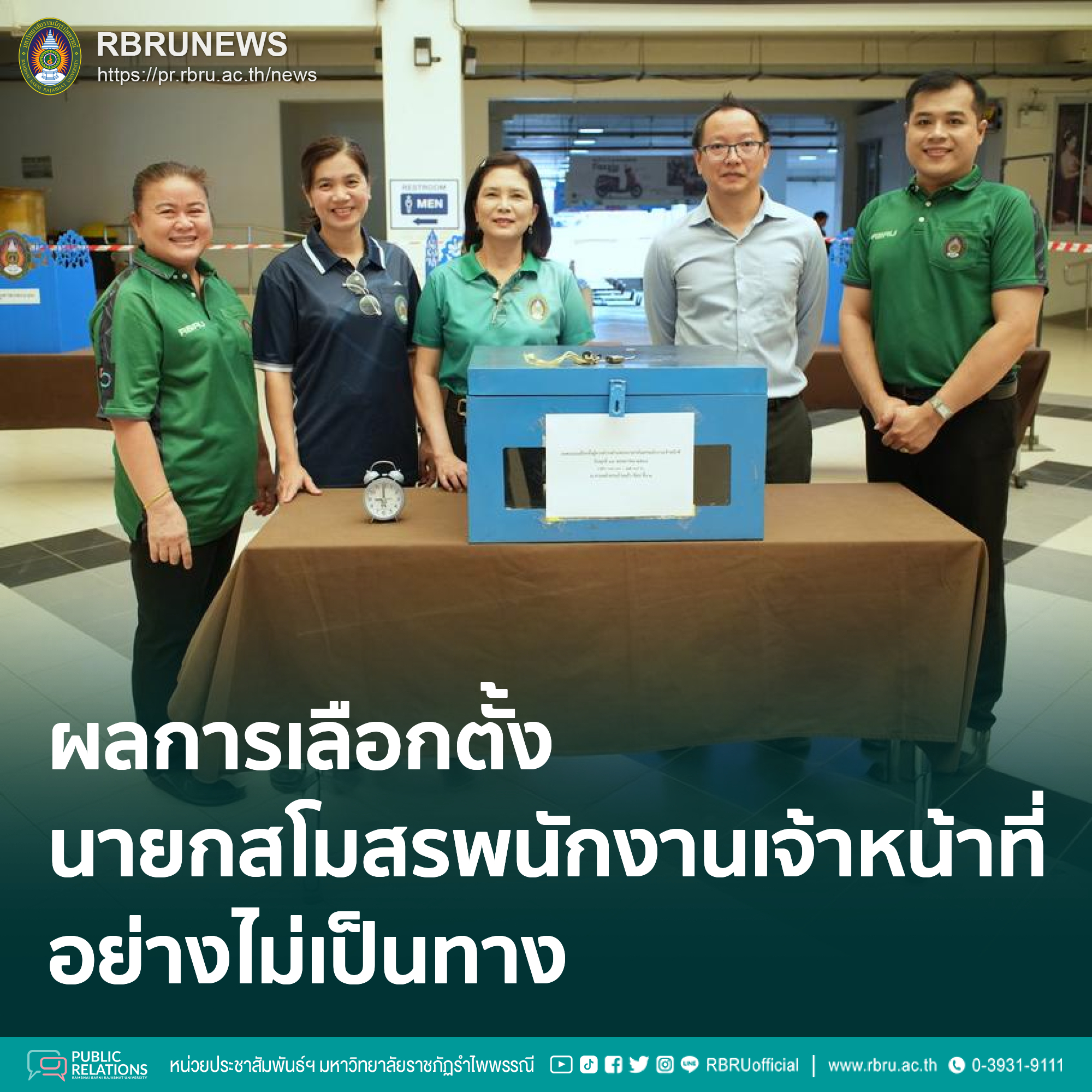 งานการเจ้าหน้าที่ มหาวิทยาลัยราชภัฏรำไพพรรณี ดำเนินการนับคะแนน การเลือกตั้งผู้อำนวยการสถาบันวิจัยแลพัฒนา ณ ลานหน้าร้านสวนบ้านแก้วช็อป ชั้น 1 อาคาร 36 โดยมีผู้ช่วยศาสตราจารย์ ดร.สินาด โกศลานันท์ รองอธิการบดี ด้านบริหาร เป็นประธานการนับคะแนน พร้อมด้วยนางสาวกาญจนา ตรีรัตน์ รักษาการผู้อำนวยการกองกลาง และเจ้าหน้าที่งานการเจ้าหน้าที่ ร่วมเป็นสักขีพยาน ซึ่งผลการลงคะแนนเสียง หมายเลข 1 นายอเนกชัย ราศรีกุล 271 คะแนน สำหรับการดำรงตำแหน่งนายกสโมสรพนักงานเจ้าหน้าที่อย่างเป็นทางการนั้น จะมีการประกาศอย่างเป็นทางการให้ทราบในโอกาสต่อไป