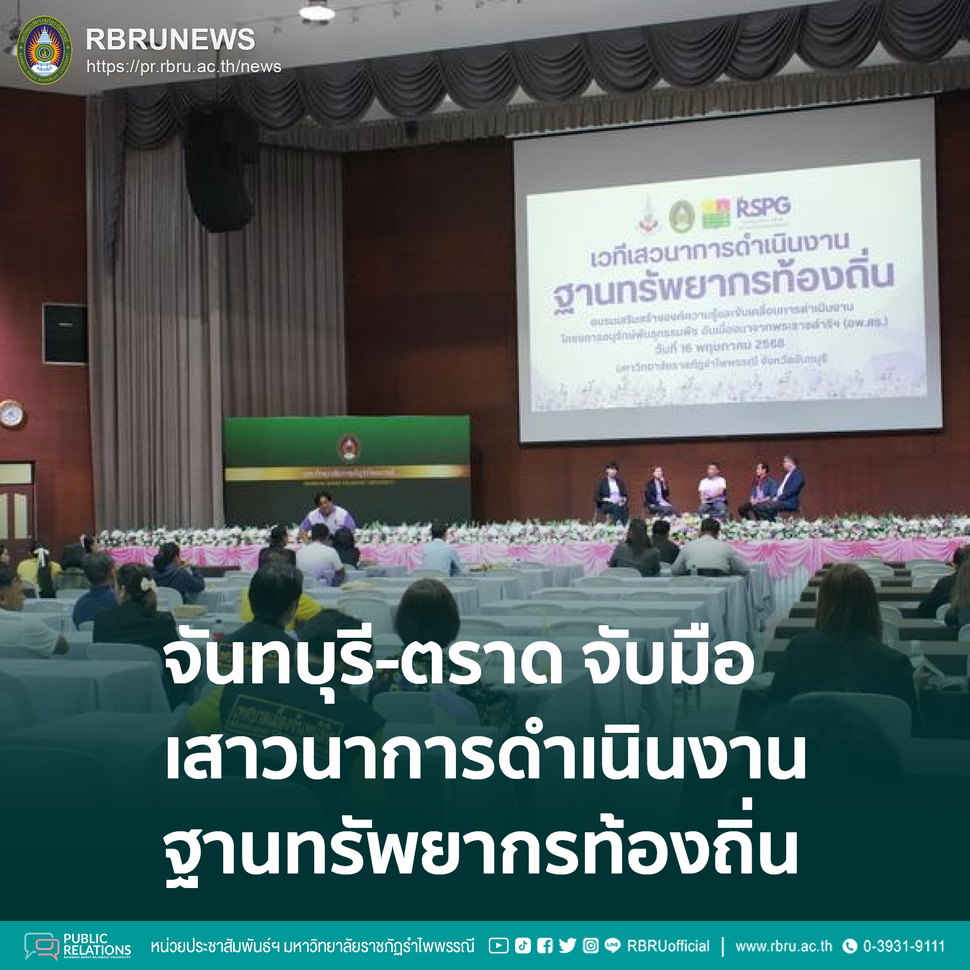 16 พฤษภาคม 2568 ที่หอประชุมสิริรำไพพรรณ มหาวิทยาลัยราชภัฏรำไพพรรณี ศูนย์ประสานงานโครงการอนุรักษ์พันธุกรรมพืชอันเนื่องมาจากพระราชดำริฯ (อพ.สธ.-มร.รพ.) จัดโครงการอบรมเพื่อเสริมความรู้และผลักดันการดำเนินงานโครงการ อพ.สธ. ระยะที่ 5 ปีที่เจ็ด (งานฐานทรัพยากรท้องถิ่น) โดยอธิการบดีและผู้บริหารมหาวิทยาลัยให้การต้อนรับ นายมนต์สิทธิ์ ไพศาลธนวัฒน์ ผู้ว่าราชการจังหวัดจันทบุรี และนายพีระ เอี่ยมสุนทร รองผู้ว่าราชการจังหวัดตราด ที่ได้ร่วมเป็นประธานเปิดงานอย่างเป็นทางการ แสดงให้เห็นถึงความร่วมมือ ที่เข้มแข็งระหว่างสองจังหวัดในการ ส่งเสริม งานด้านการอนุรักษ์ทรัพยากรท้องถิ่น
