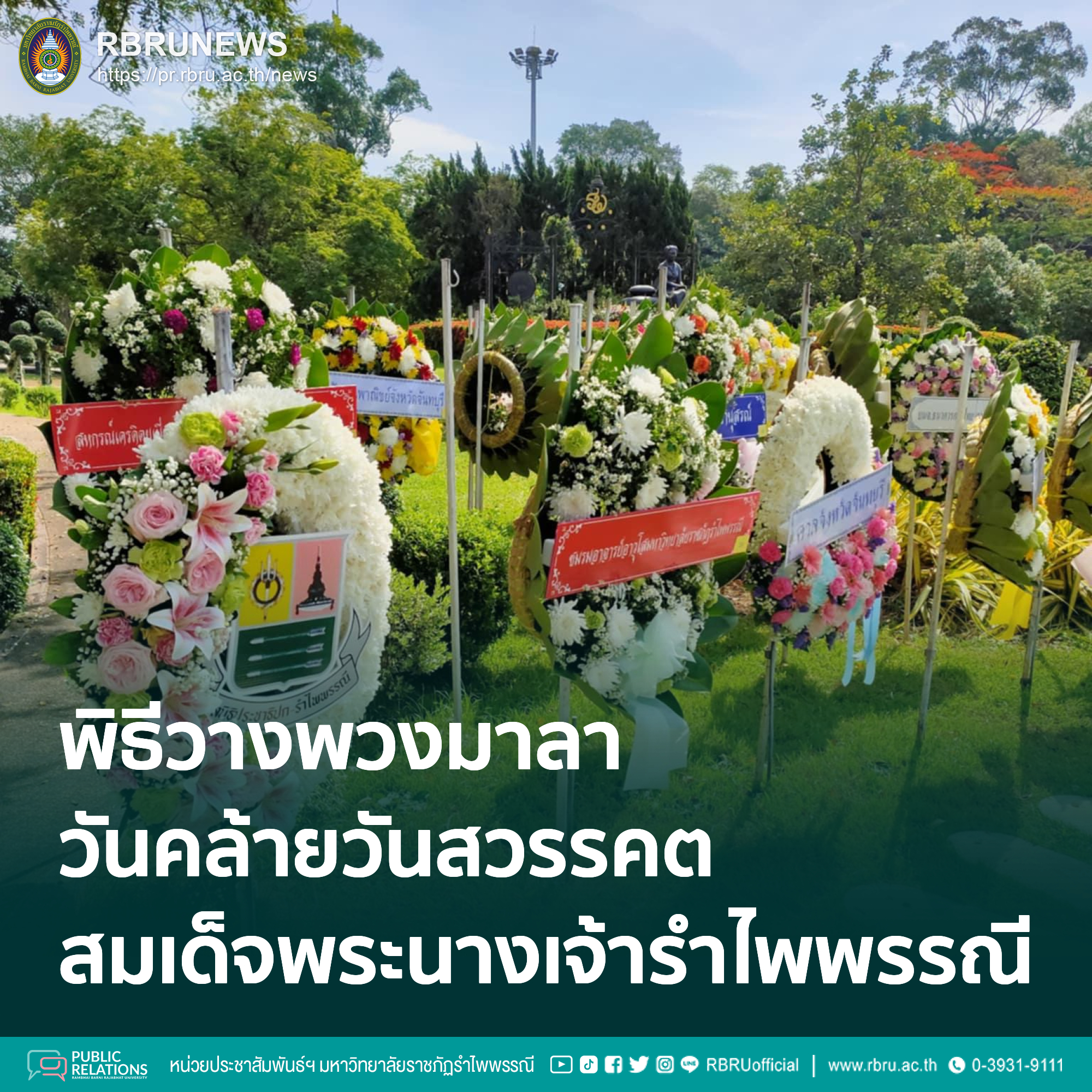 ณ ลานพระบรมราชินยานุสาวรีย์สมเด็จพระนางเจ้ารำไพพรรณี วังสวนบ้านแก้ว ผู้ช่วยศาสตราจารย์ไวกูณฑ์ ทองอร่าม อธิการบดีมหาวิทยาลัยราชภัฏรำไพพรรณี และคณะผู้บริหารมหาวิทยาลัยฯ ให้การต้อนรับ นายมนต์สิทธิ์ ไพศาลธนวัฒน์ ผู้ว่าราชการจังหวัดจันทบุรี ประธานในพิธีบำเพ็ญกุศลและวางพวงมาลา เนื่องในวันคล้ายวันสวรรคตสมเด็จพระนางเจ้ารำไพพรรณี พระบรมราชินี ในรัชกาลที่ 7 โดยในปีนี้ได้รับเกียรติจาก หม่อมหลวงศิริเฉลิม สวัสดิวัตน์ คณะกรรมการมูลนิธิประชาธิปก - รำไพพรรณี พร้อมด้วยผู้แทนส่วนราชการ คณะผู้บริหารมหาวิทยาลัย คณาจารย์ และนักศึกษา เข้าร่วมพิธีอย่างพร้อมเพรียง นอกจากนี้ ภายในงานยังได้มีพิธีมอบเข็มกลัดพระบรมสาทิสลักษณ์และเครื่องวรภาชน์ส่วนพระองค์ โดยหม่อมหลวงศิริเฉลิม สวัสดิวัตน์ ให้แก่สำนักศิลปวัฒนธรรมและพัฒนาชุมชน มหาวิทยาลัยราชภัฏรำไพพรรณี เพื่อเป็นเกียรติประวัติและเป็นแรงบันดาลใจในการดำเนินงานด้านศิลปวัฒนธรรมต่อไป