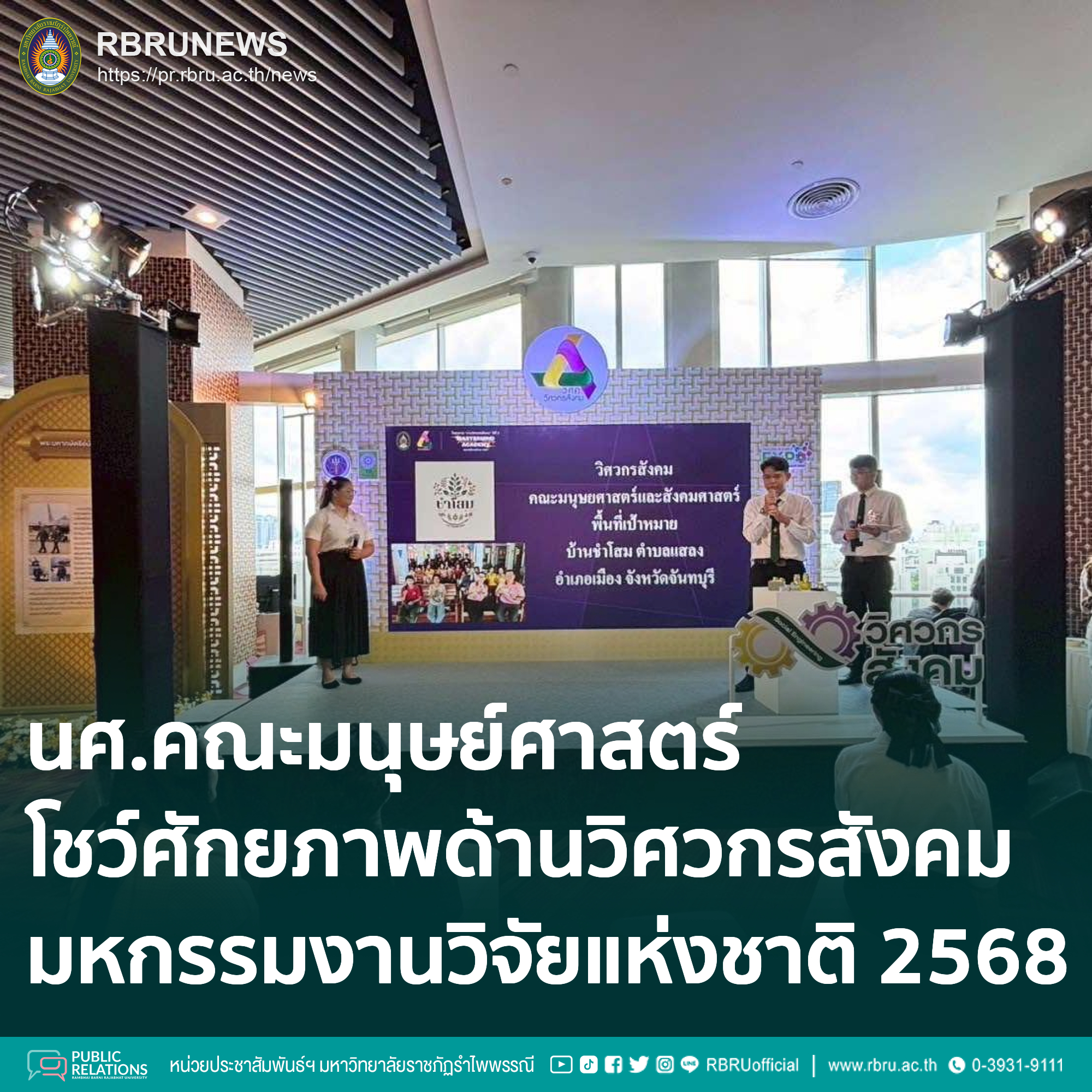 กรุงเทพมหานคร, 18 มิถุนายน 2568 – ทีมวิศวกรสังคมจากคณะมนุษยศาสตร์และสังคมศาสตร์ มหาวิทยาลัยราชภัฏรำไพพรรณี ในนามทีม “ชำโสมโอมเพี้ยง” ได้แสดงศักยภาพอันน่าประทับใจ ในมหกรรมงานวิจัยแห่งชาติ 2568 (Thailand Research Expo 2025) ณ ห้อง World Ballroom ชั้น 23 โรงแรมเซ็นทาราแกรนด์และบางกอกคอนเวนชันเซ็นเตอร์ เซ็นทรัลเวิลด์ ซึ่งการเข้าร่วมงานครั้งนี้เป็นการตอกย้ำบทบาทของมหาวิทยาลัยราชภัฏรำไพพรรณีในการเป็นสถาบันการศึกษาที่มุ่งเน้นการสร้างสรรค์นวัตกรรมและพัฒนาบุคลากรเพื่อรับใช้สังคม โดยทีม "ชำโสมโอมเพี้ยง" ได้จัดแสดงบูธและนำเสนอผลงานวิจัย "ยาหม่องสมุนไพรพื้นบ้าน หมู่บ้านชำโสม จังหวัดจันทบุรี" ซึ่งเป็นผลผลิตจากการประยุกต์องค์ความรู้ท้องถิ่น ผสมผสานกับการวิเคราะห์ศักยภาพชุมชนอย่างลึกซึ้ง เพื่อสร้างมูลค่าเพิ่มและส่งเสริมเศรษฐกิจฐานราก