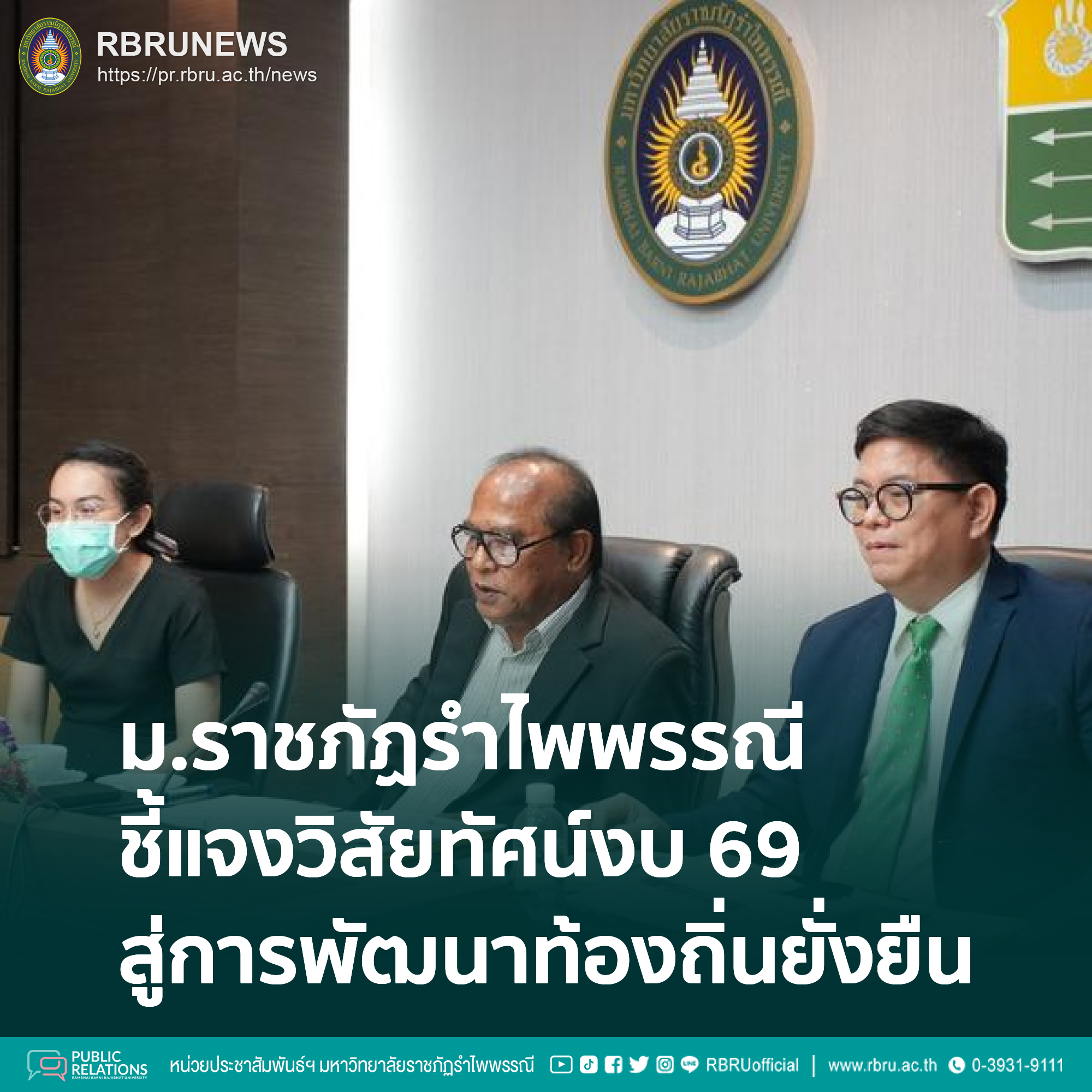 2 กรกฎาคม 2568 ที่ห้องประชุมสามศร ชั้น 8 อาคารสำนักงานอธิการบดี (อาคาร 36) ผู้ช่วยศาสตราจารย์ไวกูณฑ์ ทองอร่าม อธิการบดีมหาวิทยาลัยราชภัฏรำไพพรรณี พร้อมด้วยผู้ช่วยศาสตราจารย์ ดร.วยากร อุดมโภชน์ รองอธิการบดีด้านวางแผนและพัฒนา และทีมงานกองนโยบายและแผน สำนักงานอธิการบดี เข้าประชุมชี้แจงคณะกรรมาธิการวิสามัญพิจารณาร่างพระราชบัญญัติงบประมาณรายจ่ายประจำปีงบประมาณ 2569 โดยมีนายจุลพันธ์ อมรวิวัฒน์ เป็นประธานคณะกรรมาธิการฯ เพื่อตอบข้อซักถามของคณะกรรมาธิการวิสามัญพิจาณาร่างพระราชบัญญัติงบประมาณร่ายจ่ายประจำปีงบประมาณ พ.ศ. 2569