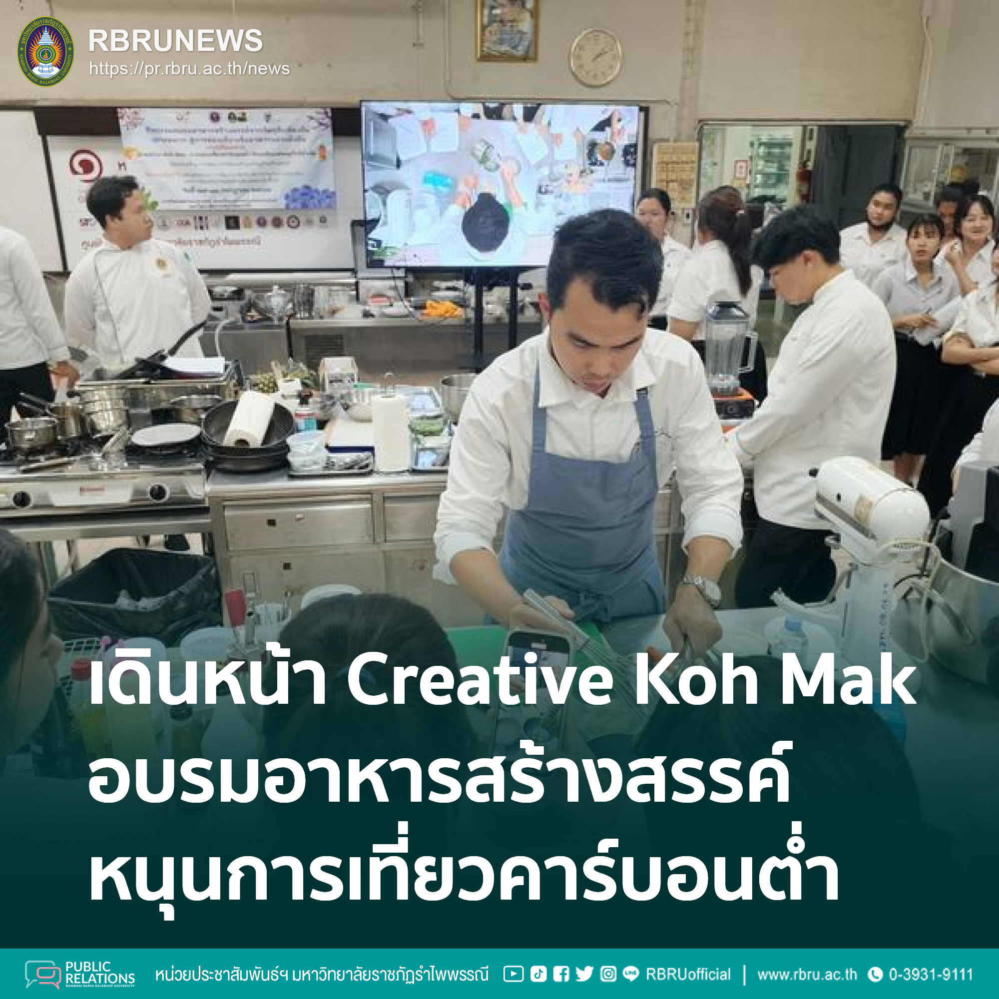จันทบุรี, 18 กรกฎาคม 2568 – มหาวิทยาลัยราชภัฏรำไพพรรณี โดยสาขาวิชาคหกรรมศาสตร์ คณะวิทยาศาสตร์และเทคโนโลยี ได้จัดการอบรม “อาหารสร้างสรรค์จากวัตถุดิบท้องถิ่นเกาะหมาก สู่การท่องเที่ยวเชิงอาหารอย่างยั่งยืน” ภายใต้โครงการ Creative Koh Mak: การท่องเที่ยวคาร์บอนต่ำ ขับเคลื่อนเศรษฐกิจสีน้ำเงิน กิจกรรมย่อยที่ 2 หลักสูตรอบรมการพัฒนาผลิตภัณฑ์อาหารทางการท่องเที่ยว และการยอมรับทางประสาทสัมผัสของผู้บริโภค