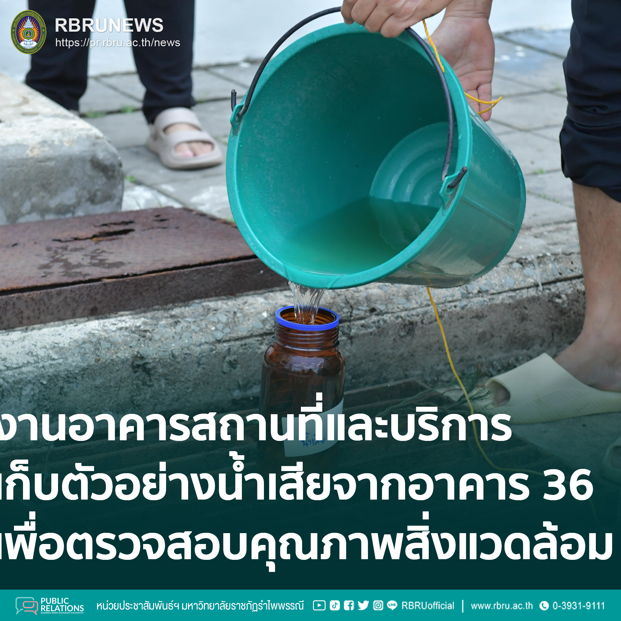 งานอาคารสถานที่และบริการ เก็บตัวอย่างน้ำเสียจากอาคาร 36 ตรวจสอบคุณภาพสิ่งแวดล้อมภายในมหาวิทยาลัยราชภัฏรำไพพรรณี