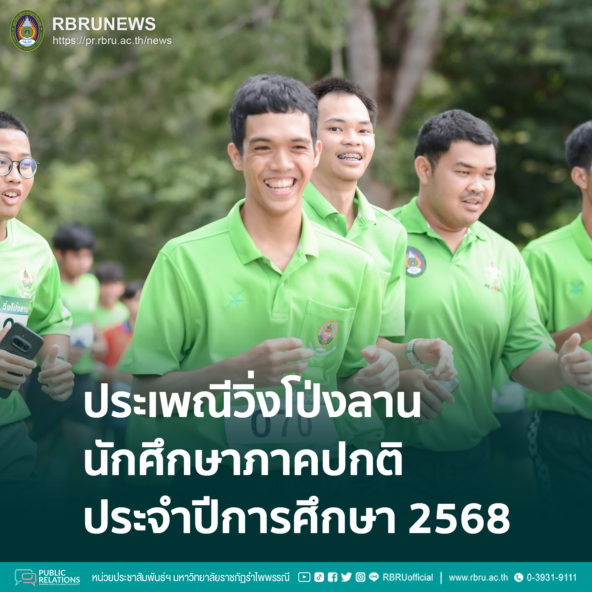 31 กรกฎาคม 2568 ณ ศาลพ่อปู่โป่งลาน ผู้ช่วยศาสตราจารย์ ดร. อาภาพร บุญมี ผู้ช่วยอธิการบดี เป็นประธานในประเพณีวิ่งโป่งลาน นักศึกษาภาคปกติ ประจำปี 2568 พร้อมกล่าวโอวาทแก่นักศึกษาชั้นปีที่ 1 ที่เข้าร่วมพิธี ทั้งนี้ประเพณีวิ่งโป่งลานเป็นกิจกรรมที่สืบทอดต่อกันมาทุกปีในหมู่นักศึกษามหาวิทยาลัยราชภัฏรำไพพรรณี โดยมีวัตถุประสงค์เพื่อให้นักศึกษาชั้นปีที่ 1 วิ่งตามเส้นทางที่มหาวิทยาลัยกำหนด อันเป็นการส่งเสริมความสัมพันธ์ระหว่างรุ่นพี่กับรุ่นน้อง รวมทั้งเปิดโอกาสให้นักศึกษาใหม่ได้ทำความคุ้นเคยกับพื้นที่ภายในมหาวิทยาลัยอีกทางหนึ่งด้วย