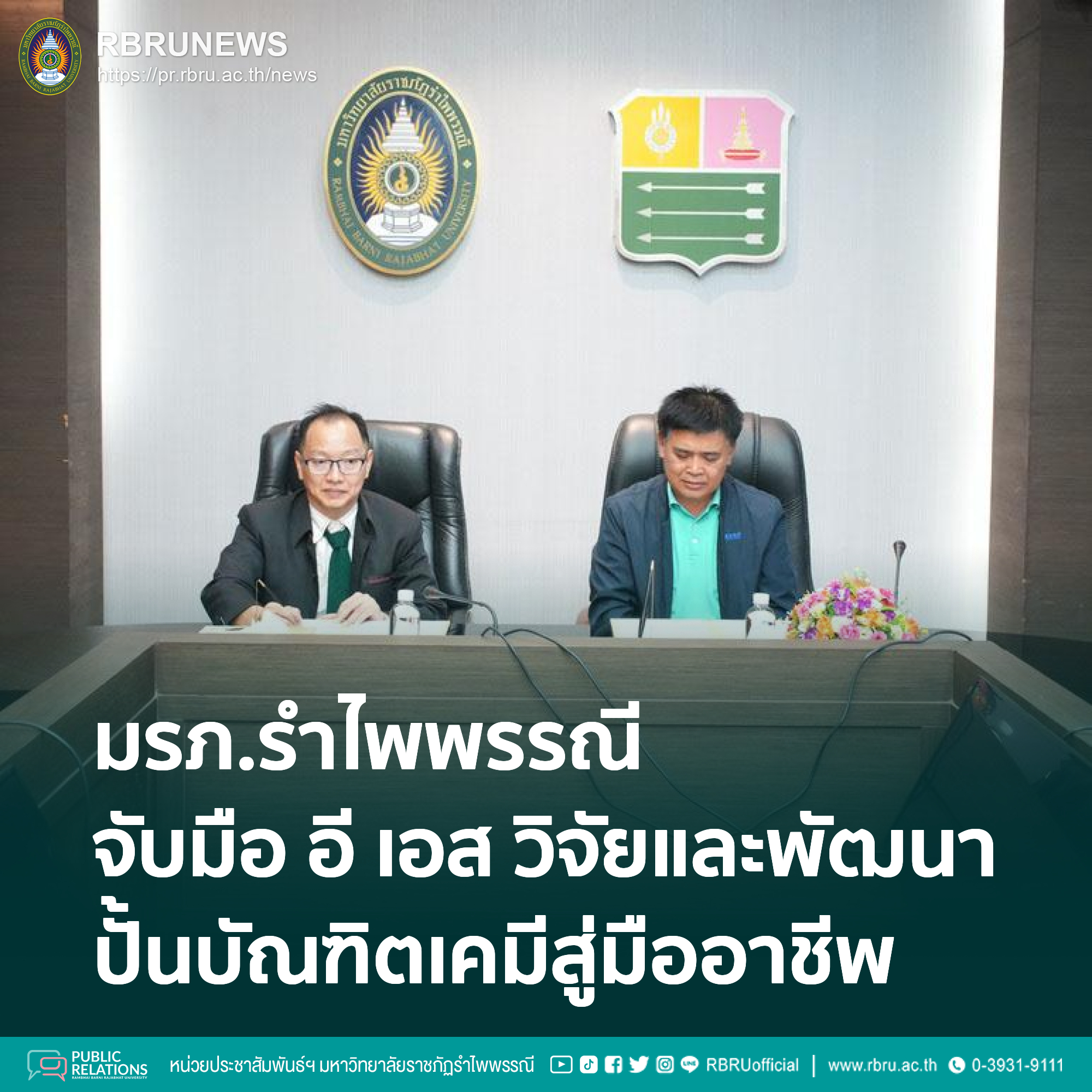 จันทบุรี – คณะวิทยาศาสตร์และเทคโนโลยี มหาวิทยาลัยราชภัฏรำไพพรรณี (มรภ.รำไพพรรณี) ลงนามความร่วมมือทางวิชาการ (MOU) กับ บริษัท อี เอส วิจัยและพัฒนา จำกัด เพื่อพัฒนาหลักสูตรและผลิตบัณฑิตสาขาวิชาเทคโนโลยีเคมีประยุกต์ (ต่อเนื่อง) ให้เป็น "บัณฑิตนักปฏิบัติการเคมี" ที่มีทักษะตรงตามความต้องการของภาคอุตสาหกรรม และสามารถทำงานได้จริงหลังจบการศึกษาทันที