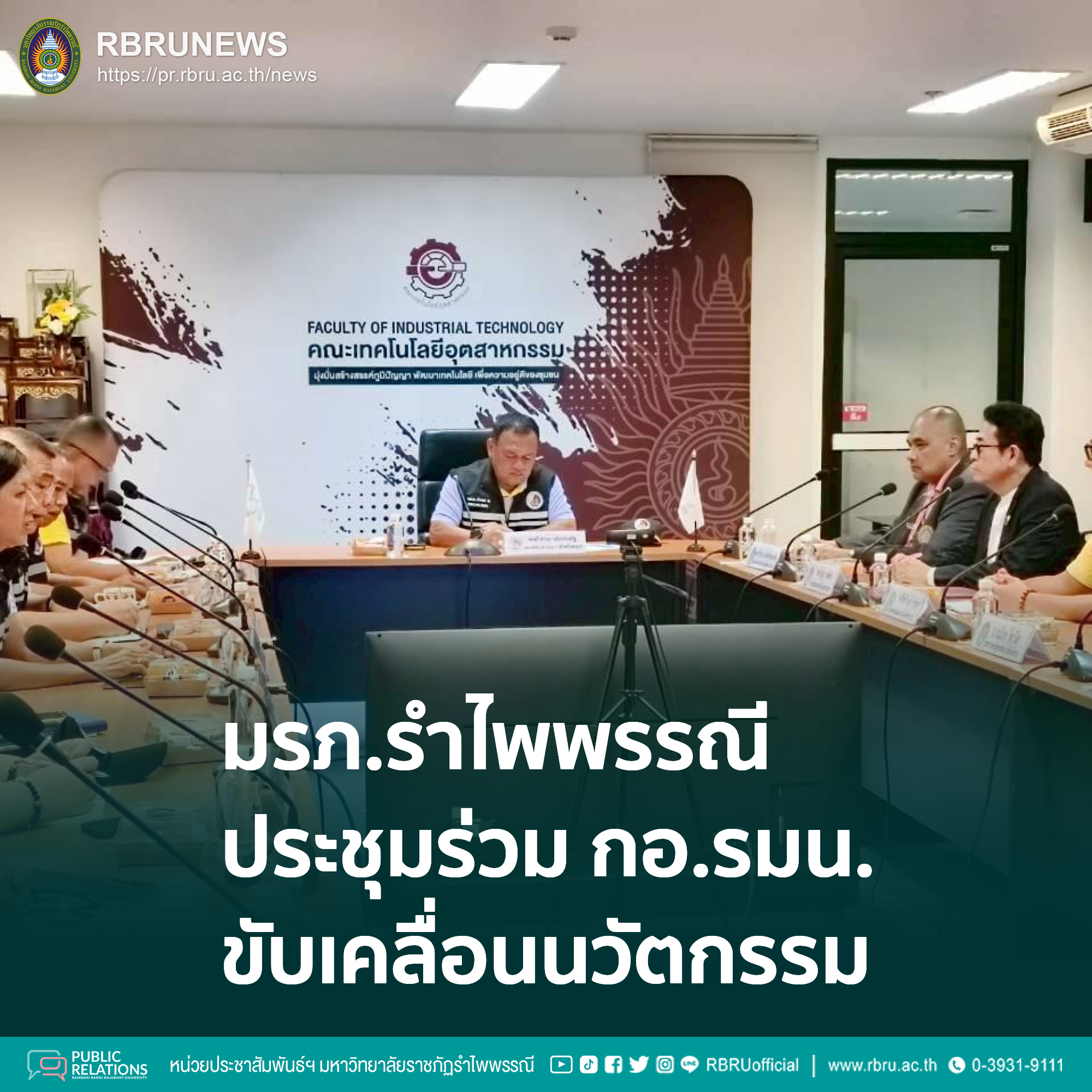 เมื่อวันที่ 21 สิงหาคม 2568 ณ ห้องประชุมไตรวิกรม คณะเทคโนโลยีอุตสาหกรรม มรภ.รำไพพรรณี ผู้ช่วยศาสตราจารย์ ดร.เอกชัย กิจเกษาเจริญ รองอธิการบดีฝ่ายกิจการนักศึกษา และผู้ช่วยศาสตราจารย์ปัญญา วงศ์ต่าย คณบดีคณะเทคโนโลยีอุตสาหกรรม พร้อมด้วยคณะทำงาน ให้การต้อนรับพลตรี คำรณ แย้มประเสริฐ ผู้อำนวยการสำนักพัฒนาระบบบริหาร กองอำนวยการรักษาความมั่นคงภายในราชอาณาจักร (กอ.รมน.) และคณะ เพื่อร่วมประชุมและติดตามความคืบหน้าโครงการนวัตกรรมสำคัญที่มหาวิทยาลัยดำเนินงานในพื้นที่จังหวัดจันทบุรี โดยครอบคลุมประเด็นสำคัญ อาทิ การส่งเสริมความมั่นคงในพื้นที่, การพัฒนาตำบลนวัตกรรมต้นแบบ และแผนนวัตกรรมเป้าหมายสำหรับปีงบประมาณ 2569-2570