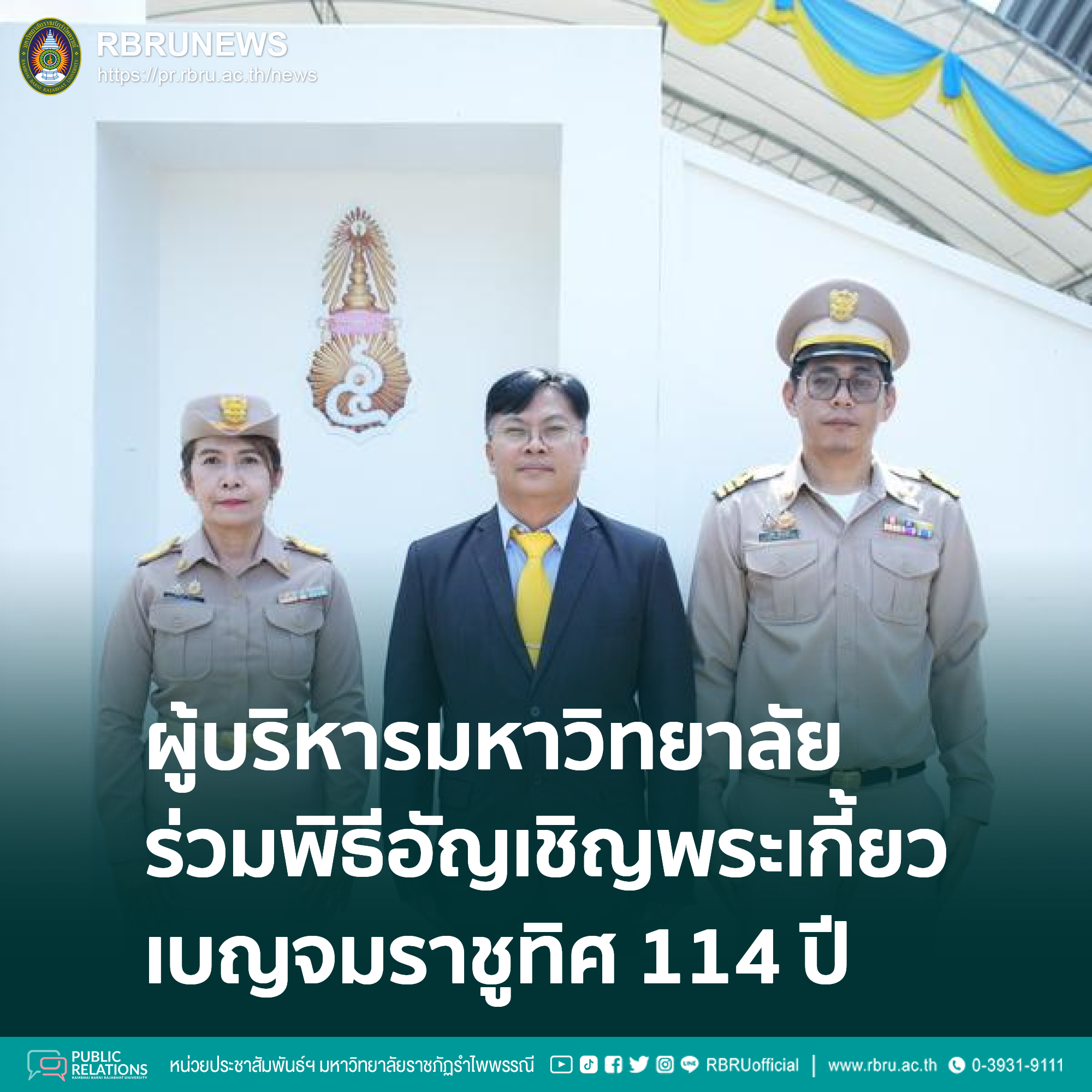 ตัวแทนผู้บริหารมหาวิทยาลัย ร่วมพิธีบวงสรวงถวายราชสดุดี พิธีอัญเชิญพระเกี้ยว และพิธีถวายพานพุ่มดอกไม้ วันคล้ายวันกำเนิดโรงเรียนเบญจมราชูทิศ จังหวัดจันทบุรี ครบ 114 ปี