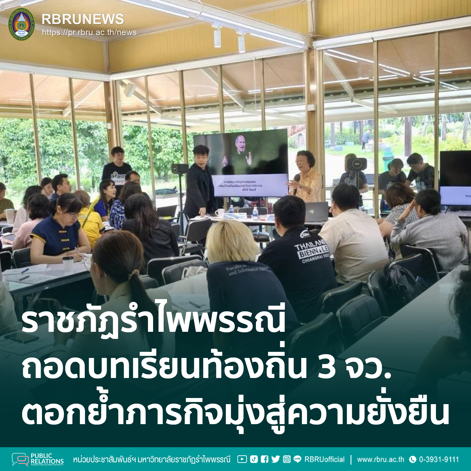 จันทบุรี – มหาวิทยาลัยราชภัฏรำไพพรรณี ได้จัดโครงการอบรมเชิงปฏิบัติการ "สังเคราะห์การพัฒนาท้องถิ่นด้วยเครื่องมือ CBR ทบทวนผลและวางแผนสู่ความยั่งยืน" ณ FujijuN ฟูจิจันท์ คาเฟ่ & รีสอร์ต ตำบลทับไทร อำเภอโป่งน้ำร้อน จังหวัดจันทบุรี โดยได้รับเกียรติจาก รองศาสตราจารย์ ดร.นาคนิมิตร อรรคศรีวร ผู้ช่วยอธิการบดี เป็นประธานในพิธีเปิดและร่วมเป็นวิทยากรบรรยาย พร้อมด้วย รศ.ดร.กาญจนา แก้วเทพ และ รศ.ดร.สุชาดา พงศ์กิตติวิบูลย์ ในการร่วมแบ่งปันองค์ความรู้