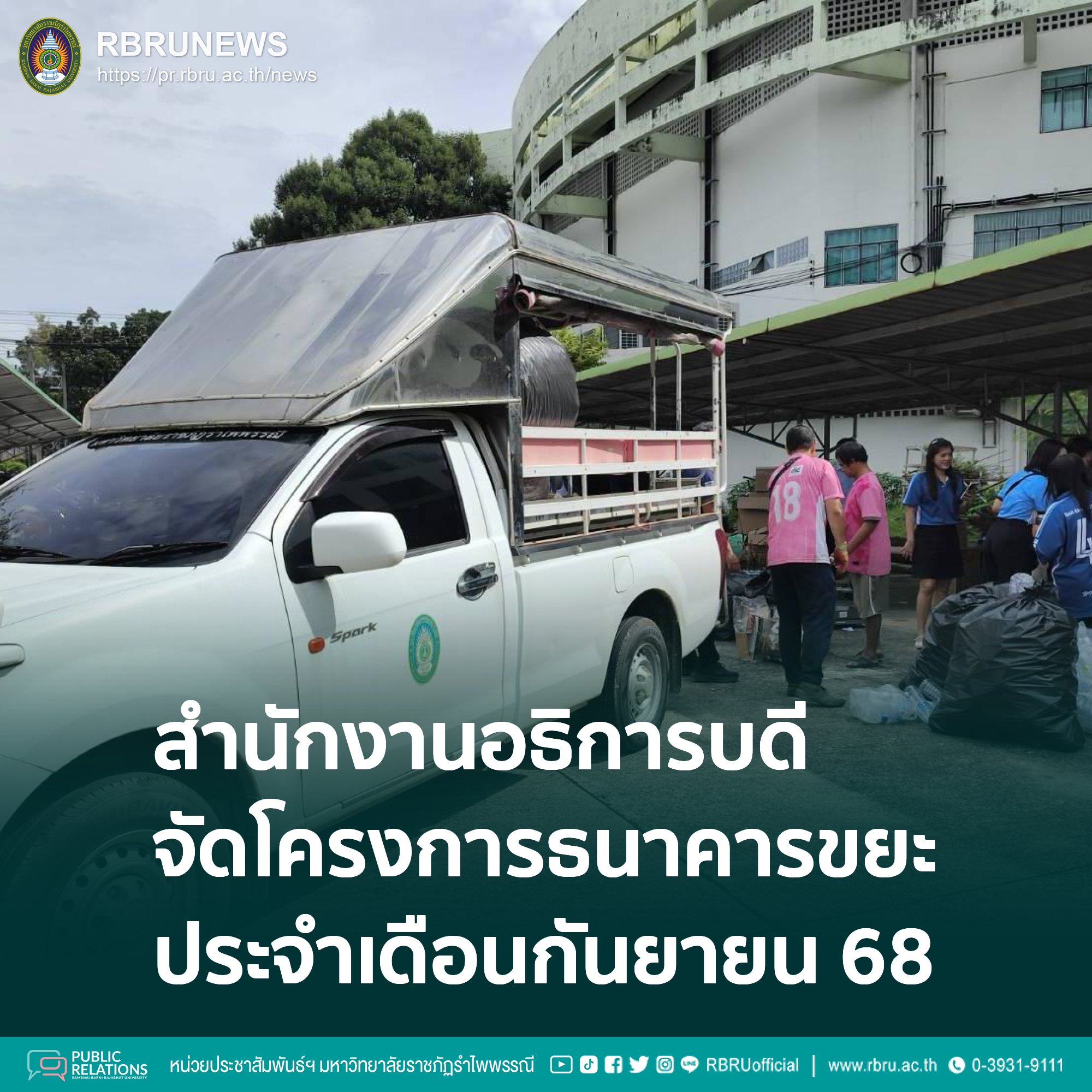 ณ บริเวณลานจอดรถ อาคาร 36 หน่วยงานต่าง ๆ ภายในมหาวิทยาลัยราชภัฏรำไพพรรณี นำขยะเหลือใช้ (ประเภทขยะแห้ง) ร่วม โครงการ ธนาคารขยะ ประจำเดือนกันยายน 2568 เพื่อนำขยะที่เหลือใช้เข้าสู่กระบวนการแปรใช้ใหม่ (Recycle) เช่น ขวดน้ำพลาสติก ขวดแก้ว กระดาษต่าง ๆ ตามสนองนโยบายสำนักงานสีเขียว เพื่อส่งเสริมการคัดแยกขยะอย่างถูกวิธี นำขยะแห้งที่ใช้แล้ว อาทิ ขวดพลาสติก, ขวดแก้ว และกระดาษต่างๆ เข้าสู่กระบวนการรีไซเคิลอย่างครบวงจร ซึ่งโครงการนี้เป็นส่วนหนึ่งของการขับเคลื่อนนโยบาย "สำนักงานสีเขียว" ของมหาวิทยาลัยฯ ที่ได้รับคำชื่นชมในฐานะต้นแบบด้านการบริหารจัดการสิ่งแวดล้อม
