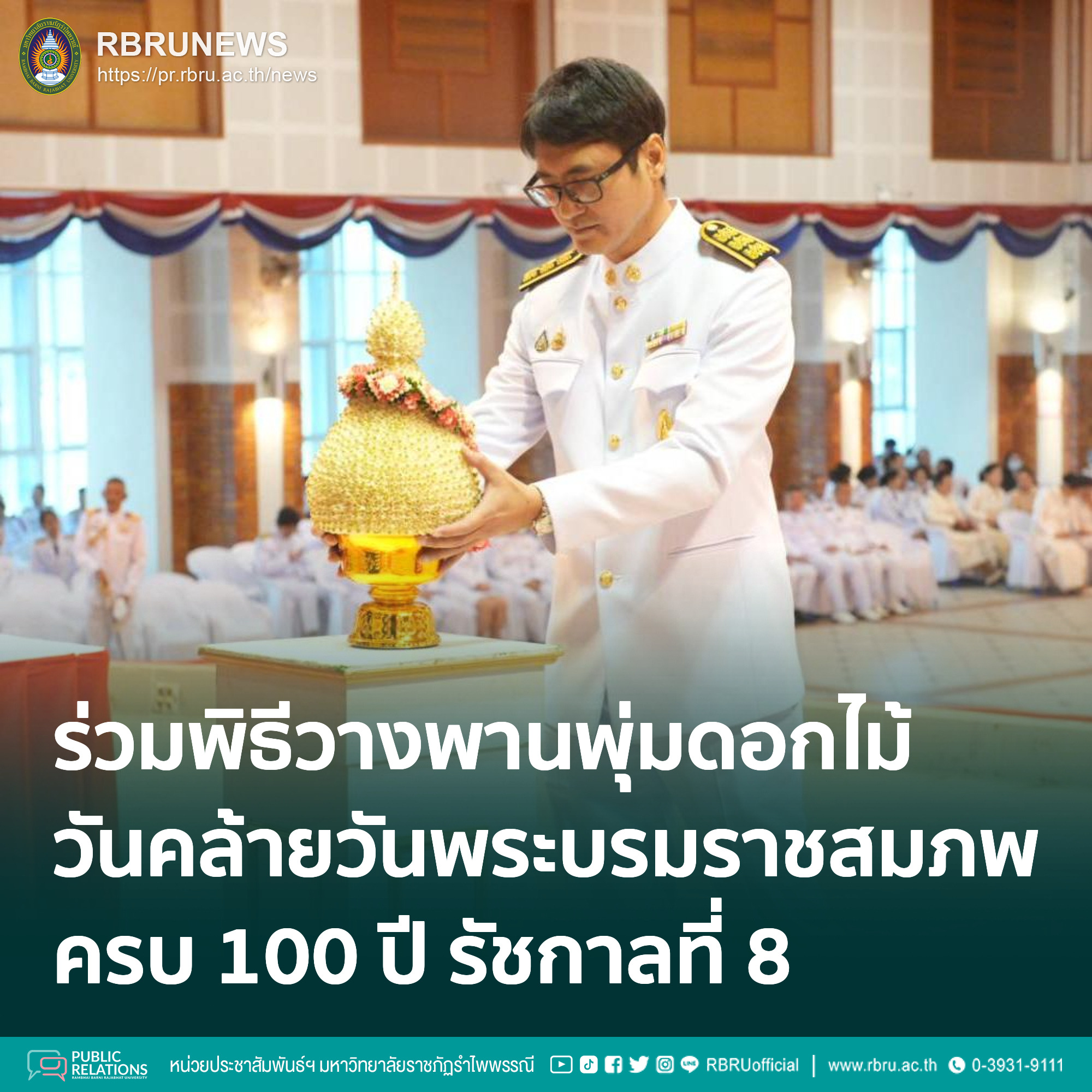 20 ก.ย.68 เวลา 09.30 น. ที่ศาลาเฉลิมพระเกียรติ อ.เมืองจันทบุรี ผู้ช่วยศาสตราจารย์ ดร. จักรพันธุ์ วงษ์พา ผู้ช่วยอธิการบดี ในฐานะตัวแทนผู้บริหารมหาวิทยาลัย ร่วมพิธีวางพุ่มดอกไม้ถวายราชสักการะพระบาทสมเด็จพระปรเมนทรมหาอนันทมหิดล พระอัฐมรามาธิบดินทร เพื่อน้อมรำลึกในพระมหากรุณาธิคุณของพระบาทสมเด็จพระปรเมนทรมหาอนันทมหิดล พระอัฐมรามาธิบดินทร เนื่องในโอกาสวันคล้ายวันพระบรมราชสมภพครบ 100 ปี ยุวกษัตริย์พระผู้อยู่ในใจไทยตลอดกาล โดยมีนายนายมนต์สิทธิ์ ไพศาลธนวัฒน์ ผู้ว่าราชการจังหวัดจันทบุรี นำหัวหน้าส่วนราชการ ข้าราชการตุลาการ ศาล ทหาร ตำรวจ คณะกรรมการเหล่ากาชาดจังหวัดจันทบุรีร่วมพิธี