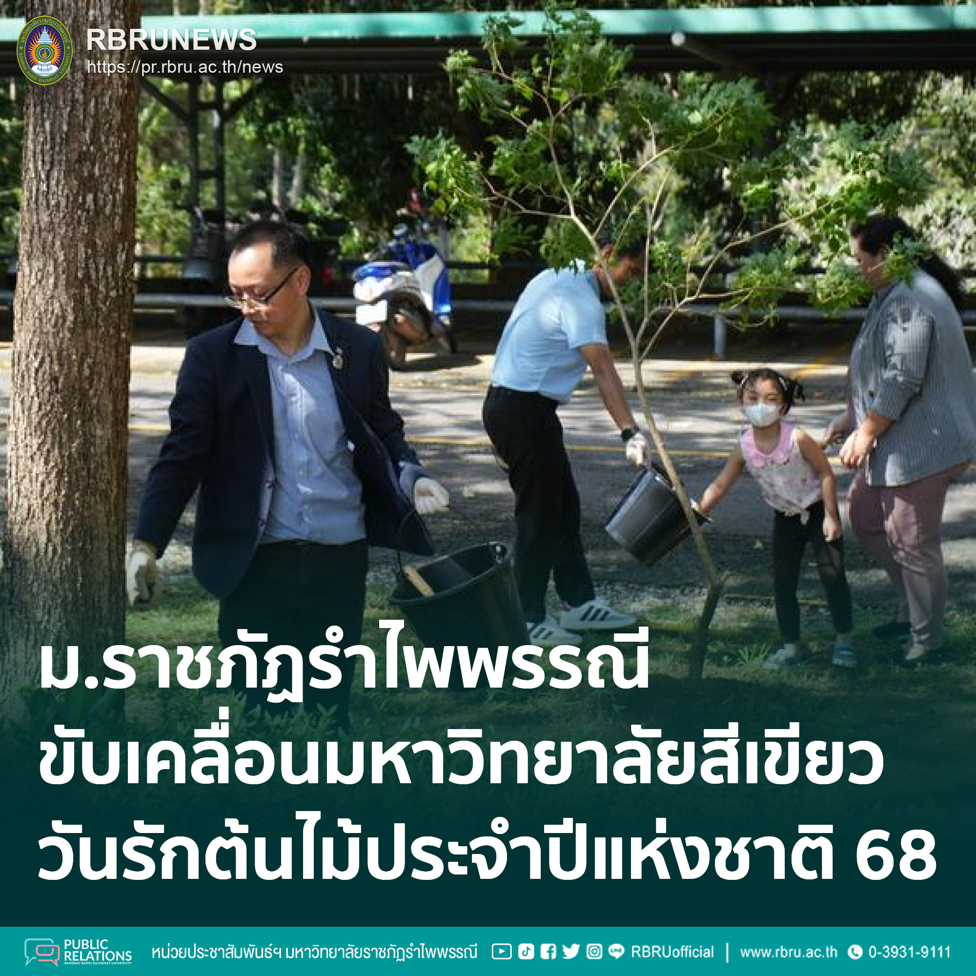 จันทบุรี – วันที่ 21 ตุลาคม 2568 มหาวิทยาลัยราชภัฏรำไพพรรณี จัดกิจกรรมบำรุงรักษาและดูแลต้นไม้ครั้งใหญ่ทั่วพื้นที่มหาวิทยาลัย เนื่องใน “วันรักต้นไม้ประจำปีแห่งชาติ” โดยมีคณะผู้บริหาร นำโดยรองศาสตราจารย์ ดร.สินาด โกศลานันท์ รองอธิการบดีด้านบริหาร พร้อมด้วยบุคลากรจากทุกหน่วยงานเข้าร่วมกิจกรรมอย่างพร้อมเพรียง เพื่อเสริมสร้างสภาพแวดล้อมที่สวยงาม ร่มรื่น และเป็นแหล่งกักเก็บความรู้ทางธรรมชาติที่สมบูรณ์