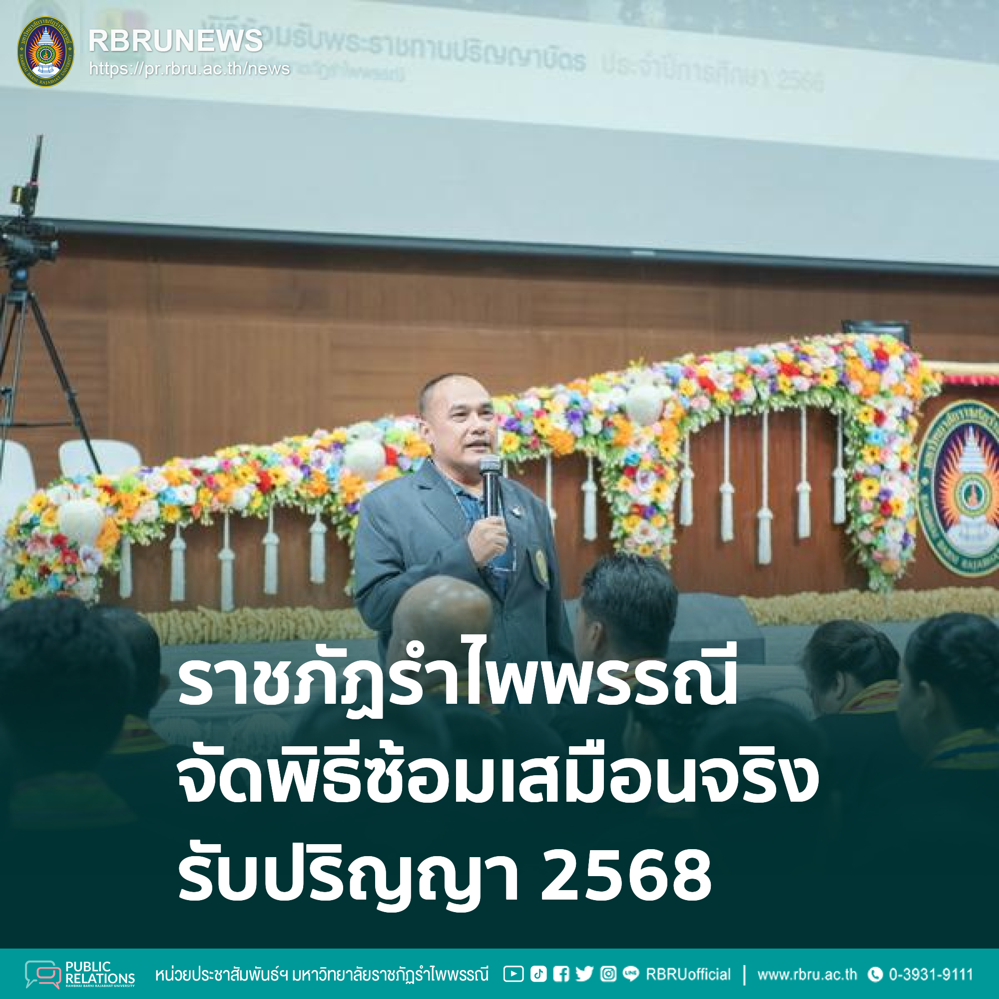 24 ตุลาคม 2568 - มหาวิทยาลัยราชภัฏรำไพพรรณี (มรภ.รำไพพรรณี) จัดพิธีซ้อมรับพระราชทานปริญญาบัตร เพื่อเตรียมความพร้อมและสร้างความเข้าใจให้แก่บัณฑิตและมหาบัณฑิตผู้สำเร็จการศึกษา ประจำปีการศึกษา 2565 - 2566 จำนวนกว่า 600 คน ก่อนเข้าร่วมพิธีรับพระราชทานปริญญาบัตรจริง ณ มหาวิทยาลัยราชภัฏนครปฐม