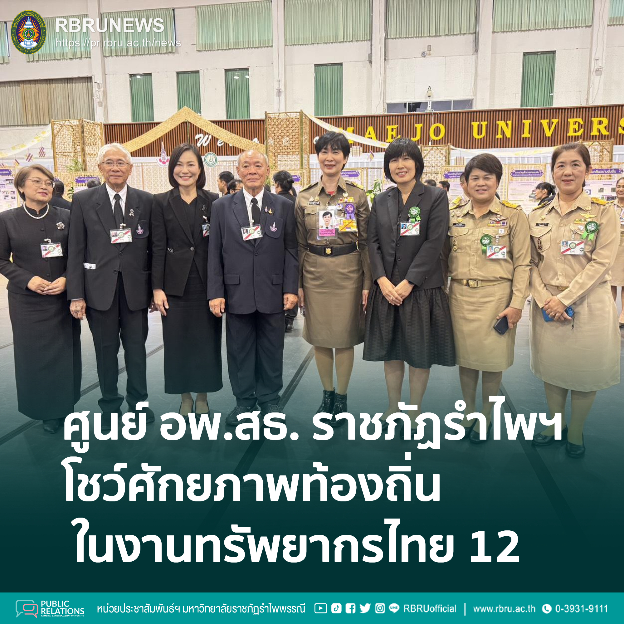 สมเด็จพระกนิษฐาธิราชเจ้า กรมสมเด็จพระเทพรัตนราชสุดาฯ สยามบรมราชกุมารี เสด็จพระราชดำเนินทรงปฏิบัติพระราชกรณียกิจเป็นการส่วนพระองค์ ทรงเปิดการประชุมวิชาการและนิทรรศการ ครั้งที่ 12 ทรัพยากรไทย : หวนดูทรัพย์สิ่งสินตน ในวันที่ 4 พฤศจิกายน 2568 ในการนี้ศูนย์ประสานงานโครงการอนุรักษ์พันธุกรรมพืชอันเนื่องมาจากพระราชดำริ สมเด็จพระเทพรัตนราชสุดาฯ สยามบรมราชกุมารี (อพ.สธ.) มหาวิทยาลัยราชภัฏรำไพพรรณี (มรภ.รำไพพรรณี) นำโดย ผู้ช่วยศาสตราจารย์สุทธินันท์ โสตวิถี ผู้อำนวยการสำนักบริการวิชาการ และรองผู้อำนวยการศูนย์ประสานงาน พร้อมด้วย ผู้ช่วยศาสตราจารย์ ดร. พรพรรณ สุขุมพินิจ รองผู้อำนวยการสำนักบริการวิชาการ และรองผู้อำนวยการศูนย์ประสานงาน และคณาจารย์นักวิจัย ร่วมรับเสด็จ