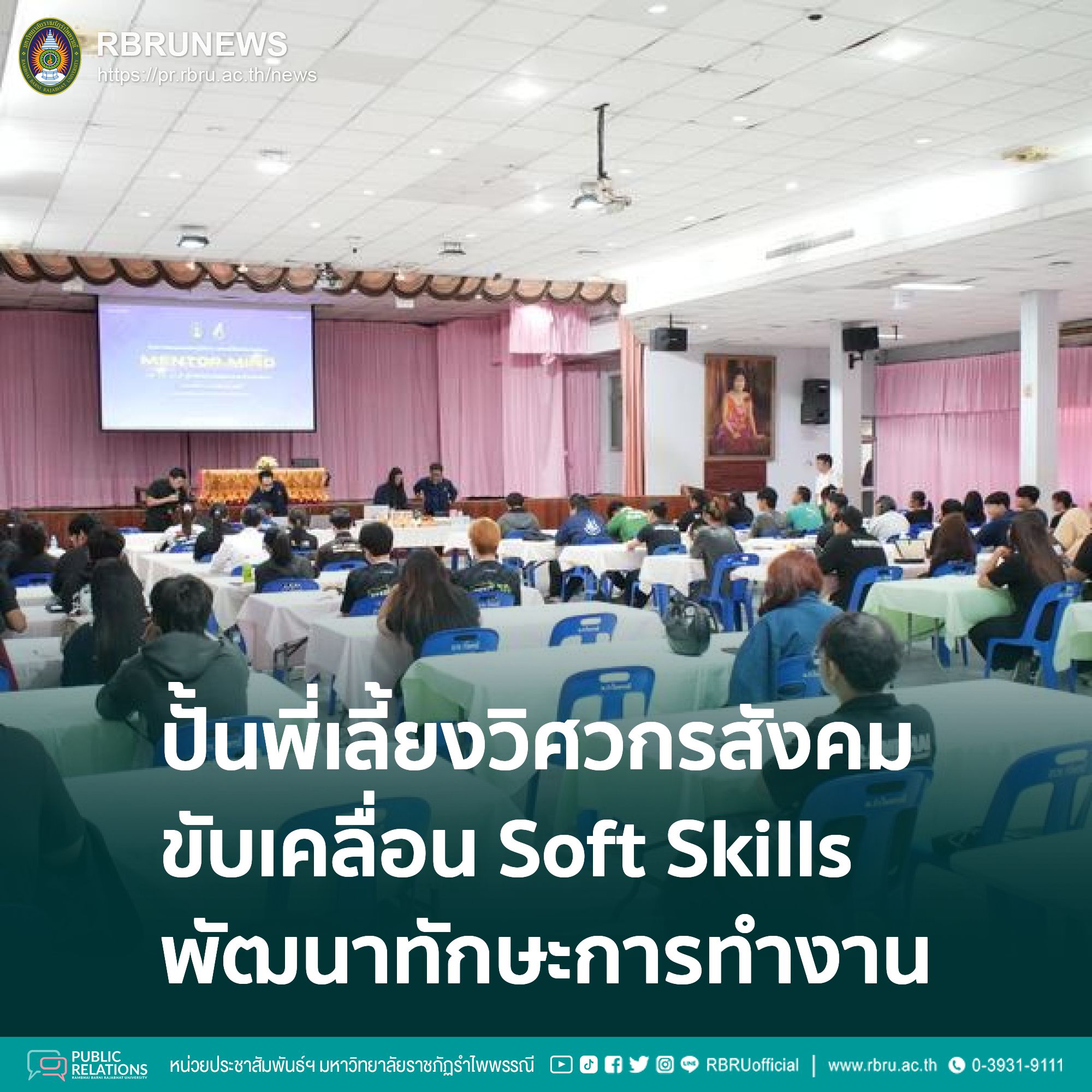 มหาวิทยาลัยราชภัฏรำไพพรรณี เปิดฉากโครงการสำคัญเพื่อยกระดับคุณภาพการศึกษาตามยุทธศาสตร์ โดยการจัดโครงการอบรมและฝึกปฏิบัติการ "สร้างพี่เลี้ยงวิศวกรสังคม Mentor mind" ระหว่างวันที่ 7 – 9 พฤศจิกายน 2568 มุ่งเน้นการ Up Skills ผู้นำนักศึกษาให้เป็นกลไกหลักในการพัฒนาทักษะ Soft Skills และคุณลักษณะ 4 ประการตามพระราโชบายในกลุ่มนักศึกษาชั้นปีที่ 1