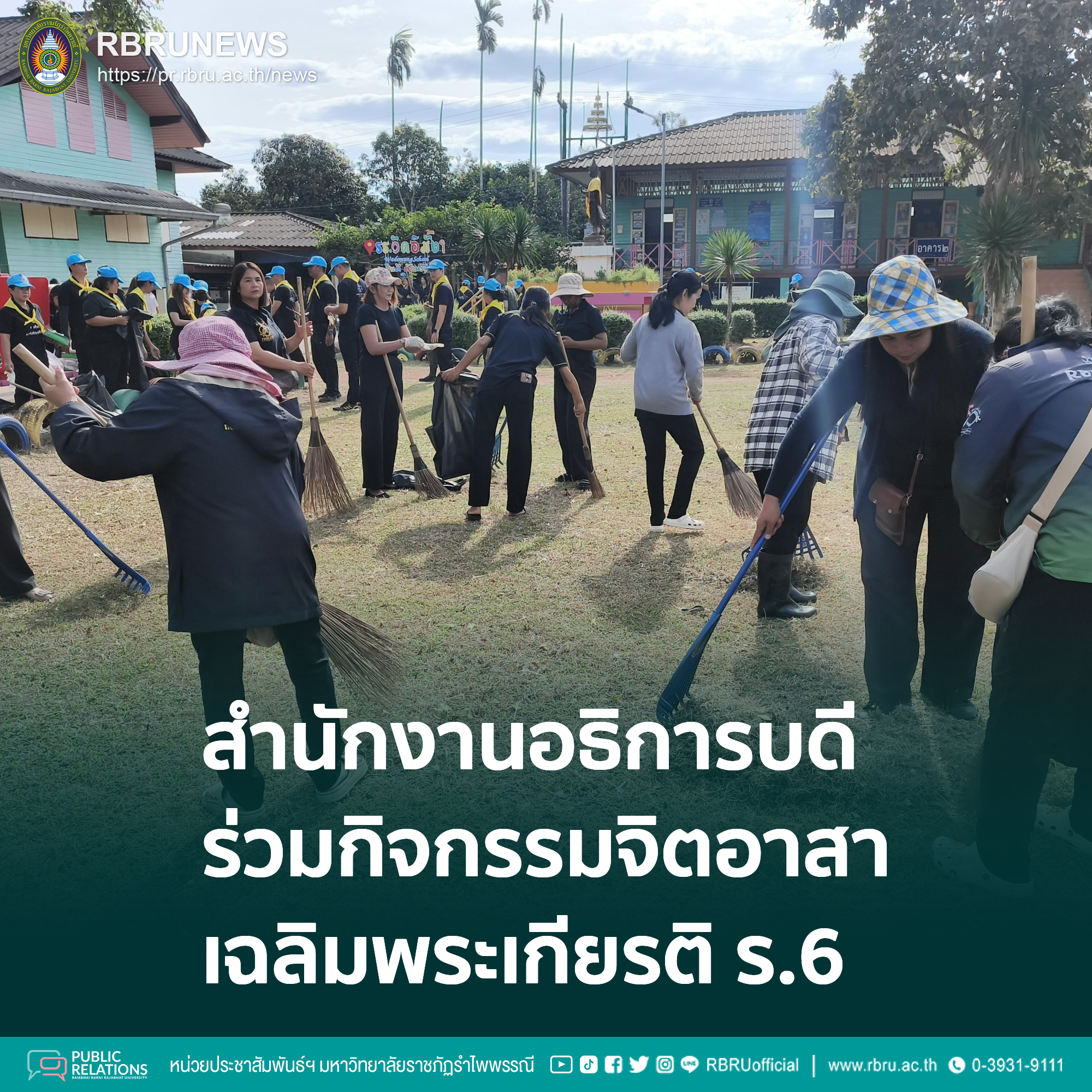 24 พ.ย. 2568 ที่โรงเรียนวัดอิมั้ง ตำบลซึ้ง อำเภอขลุง จังหวัดจันทบุรี นายธวัชชัย นามสมุทร รองผู้ว่าราชการจังหวัดจันทบุรี นำจิตอาสา 904 , จิตอาสาพระราชทาน และประชาชนชาวจังหวัดจันทบุรี ร่วมกิจกรรมจิตอาสาเฉลิมพระเกียรติพระบาทสมเด็จพระมงกุฎเกล้าเจ้าอยู่หัว ในโอกาสวันคล้ายวันสวรรคต ครบ 100 ปี ด้วยการปลูกต้นรวงผึ้ง ต้นทองอุไร และเก็บขยะและกวาดใบไม้ สร้างสิ่งแวดล้อมที่ดีและสะอาดให้แก่ชุมชน โดยสำนักงานอธิการบดี มหาวิทยาลัยราชภัฏรำไพพรรณี ได้นำบุคลากรกว่า 40 คนร่วมกิจกรรมดังกล่าว ก่อให้เกิดความสัมพันธ์ที่ดี ความร่วมมือในชุมชน และสืบสานพระราชปณิธานในการรักษาความเป็นธรรมและความเท่าเทียมในด้านการศึกษาและสังคมไทยให้แข็งแรงต่อไป