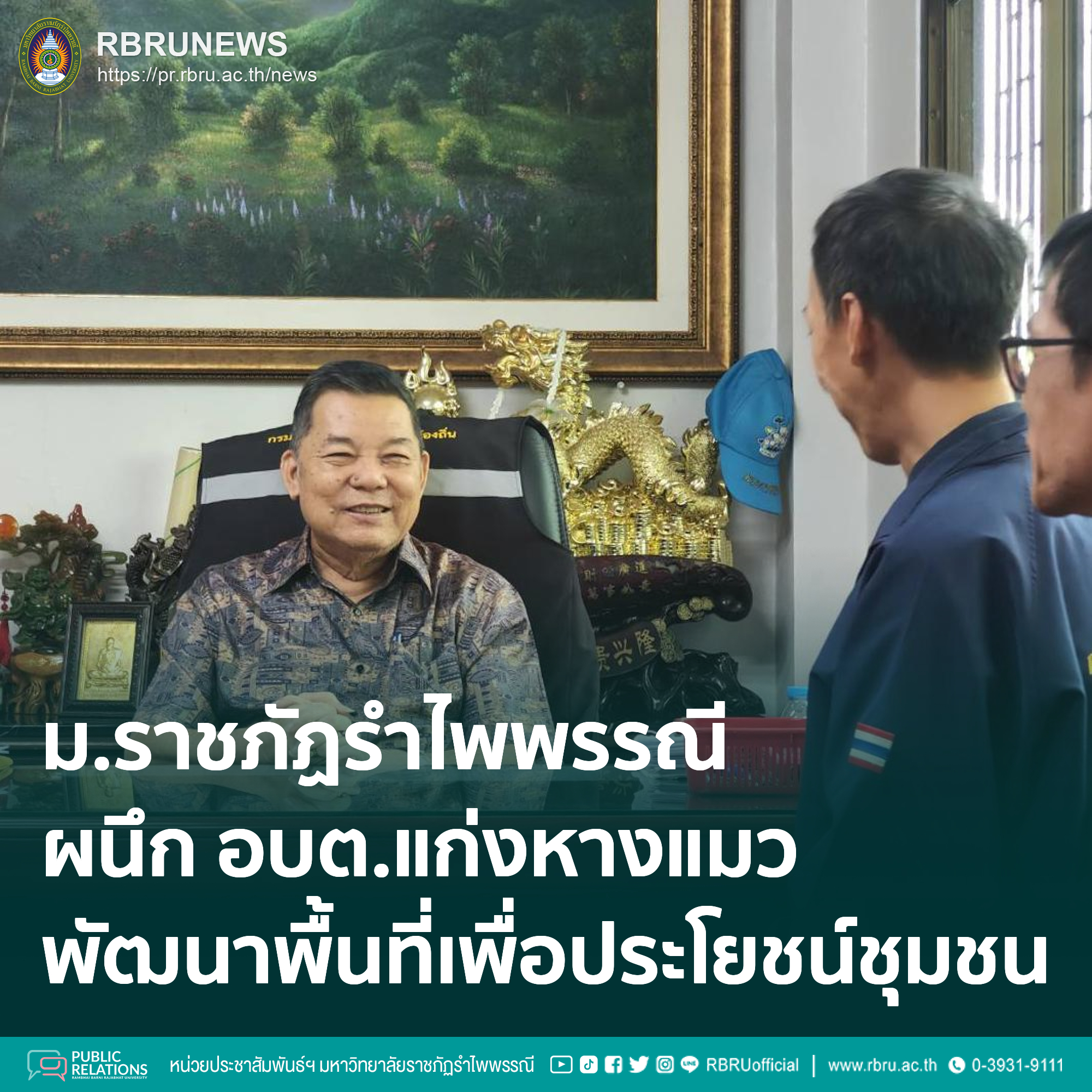 ในการพบปะครั้งนี้ ทั้งสองฝ่ายได้ร่วมพูดคุยแลกเปลี่ยนความคิดเห็นเกี่ยวกับ การปรับปรุงและพัฒนาพื้นที่ของมหาวิทยาลัยราชภัฏรำไพพรรณี เพื่อให้เกิดความเหมาะสมและสามารถใช้ประโยชน์ร่วมกันกับชุมชนได้อย่างมีประสิทธิภาพ โดยมุ่งเน้นการสร้าง ความร่วมมือและความสัมพันธ์อันดีระหว่างมหาวิทยาลัยราชภัฏรำไพพรรณีกับองค์การบริหารส่วนตำบลแก่งหางแมว