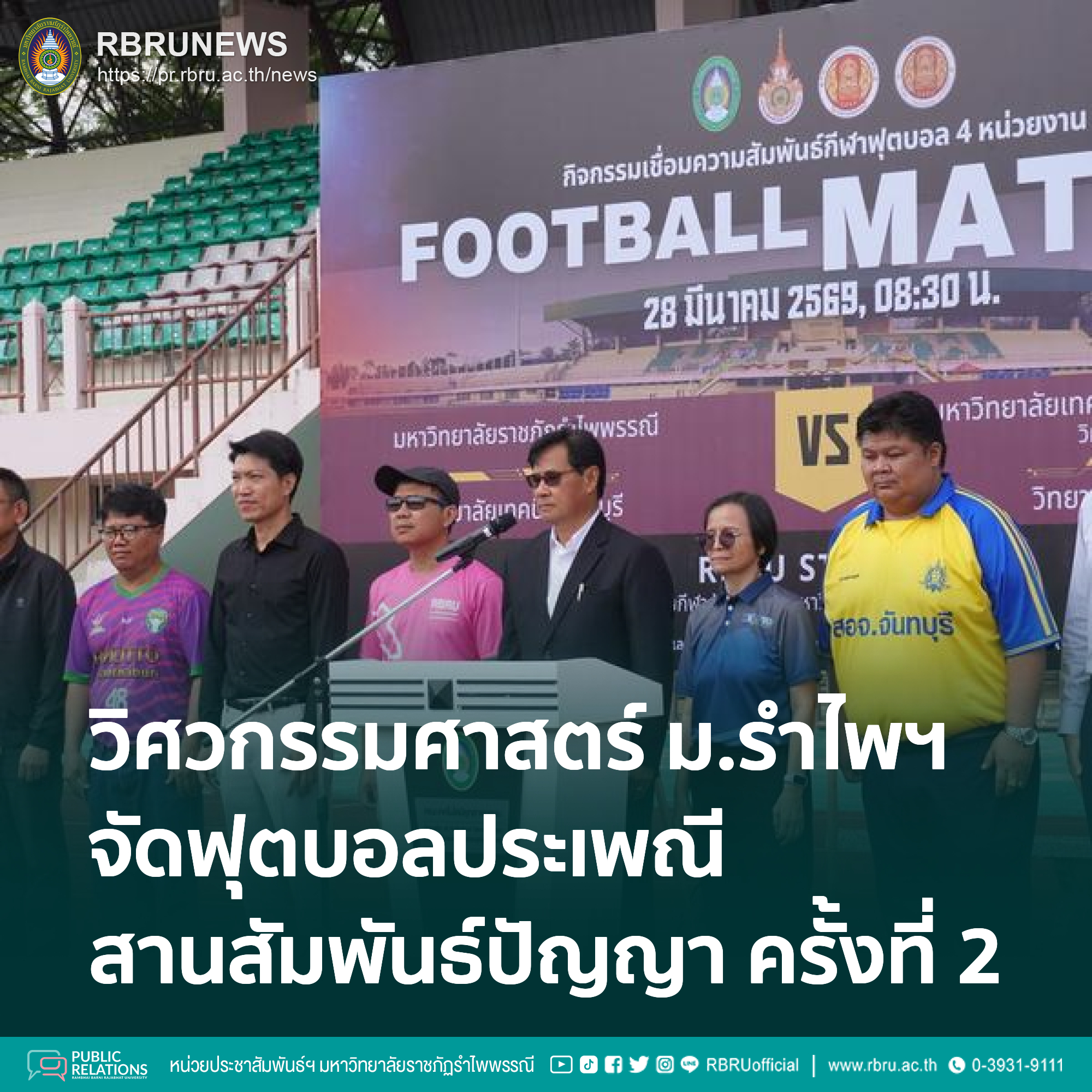 จันทบุรี (28 มีนาคม 2569) – คณะวิศวกรรมศาสตร์และเทคโนโลยีอุตสาหกรรม มหาวิทยาลัยราชภัฏรำไพพรรณี จัดโครงการอบรมแลกเปลี่ยนเรียนรู้ด้านวิชาการและสานสัมพันธ์ปัญญาสู่ตะวันออก ครั้งที่ 2 ณ สนามกีฬาศักดิเดชน์ โดยมีวัตถุประสงค์เพื่อสร้างเครือข่ายความร่วมมือระหว่างสถาบันอุดมศึกษาและอาชีวศึกษาในพื้นที่จังหวัดจันทบุรีและตราด