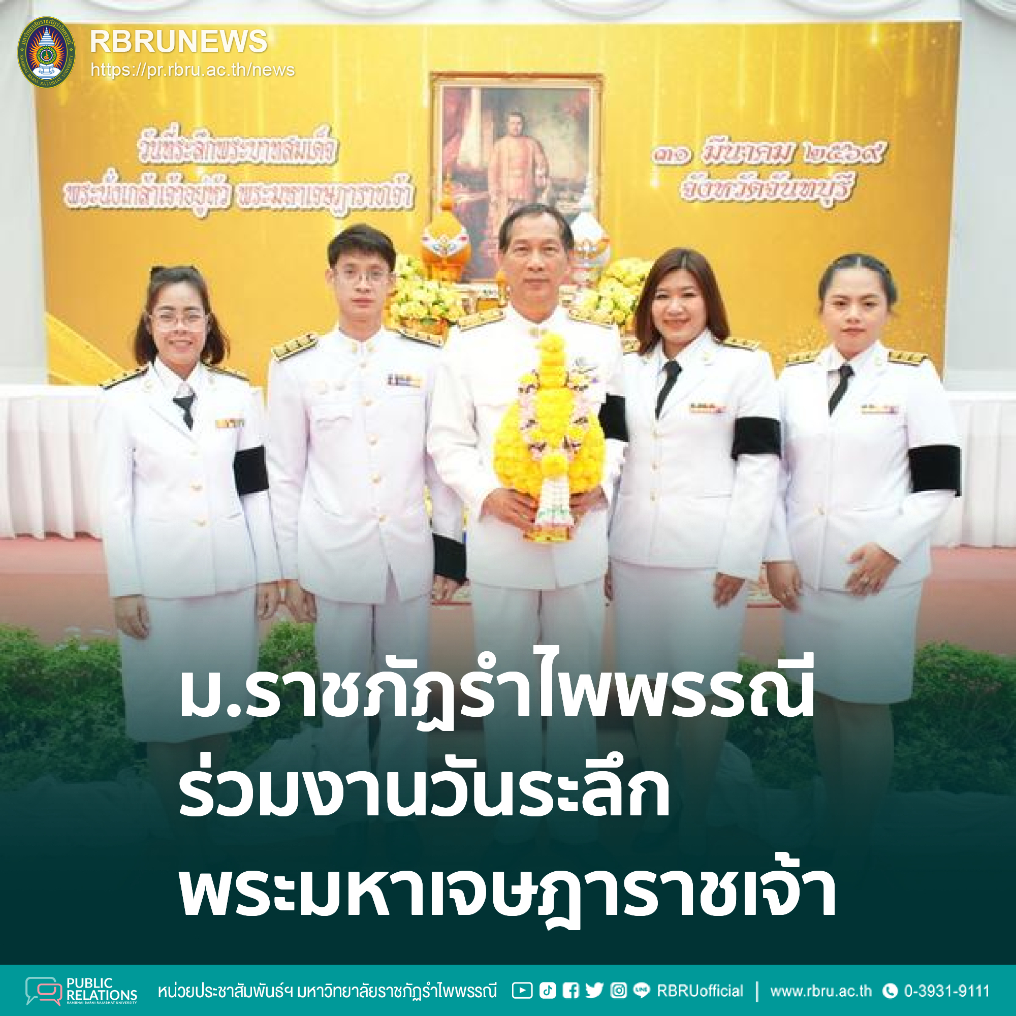 31 มีนาคม 2569 ที่ โถงแสงจันทร์ ชั้น 1 ศาลากลางจังหวัดจันทบุ รีผู้ช่วยศาสตราจารย์ วารินทร์ สุภาภรณ์ คณบดีคณะมนุษยศาสตร์และสังคมศาสตร์ ในฐานะผู้แทนมหาวิทยาลัย ร่วมรัฐพิธีวันระลึกพระบาทสมเด็จพระนั่งเกล้าเจ้าอยู่หัว พระมหาเจษฎาราชเจ้า ประจำปี 2569 โดยมีนายธวัชชัย นามสมุทร รองผู้ว่าราชการจังหวัดจันทบุรี เป็นประธาน มีคณะหัวหน้าศาล ผู้พิพากษา ข้าราชการทหาร ตำรวจ และหัวหน้าส่วนราชการร่วมวางพานพุ่มดอกไม้สดถวายราชสักการะ พร้อมกล่าวถวายราชสดุดี เพื่อเทิดพระเกียรติพระมหากรุณาธิคุณของ พระบาทสมเด็จพระนั่งเกล้าเจ้าอยู่หัว รัชกาลที่ 3 แห่งราชวงศ์จักรี