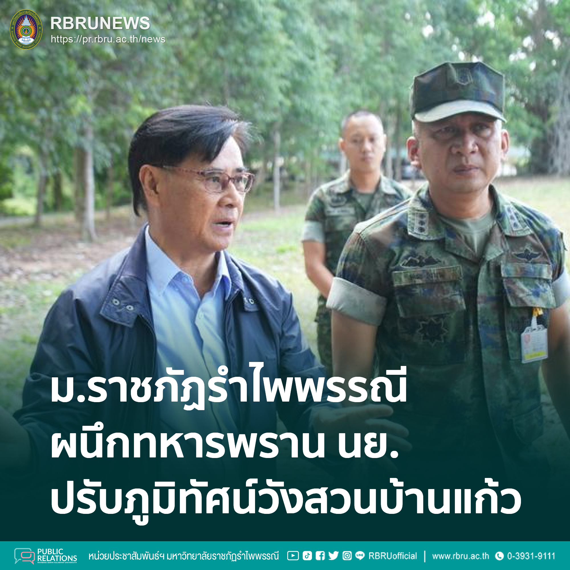 จันทบุรี (31 มีนาคม 2569) – รองศาสตราจารย์พอพันธ์ สุทธิวัฒนะ รักษาราชการแทนอธิการบดี มหาวิทยาลัยราชภัฏรำไพพรรณี พร้อมคณะผู้บริหาร ให้การต้อนรับ นาวาเอกจตุพล สง่างาม หัวหน้าส่วนการฝึกและศึกษา หน่วยเฉพาะกิจทหารพรานนาวิกโยธิน และคณะทำงาน ในโอกาสลงพื้นที่ร่วมวางแผนและสำรวจภูมิทัศน์โดยรอบวังสวนบ้านแก้ว เพื่อเตรียมความพร้อมในการปรับปรุงพื้นที่ให้มีความเป็นระเบียบ เรียบร้อย และคงไว้ซึ่งความสง่างามทางประวัติศาสตร์