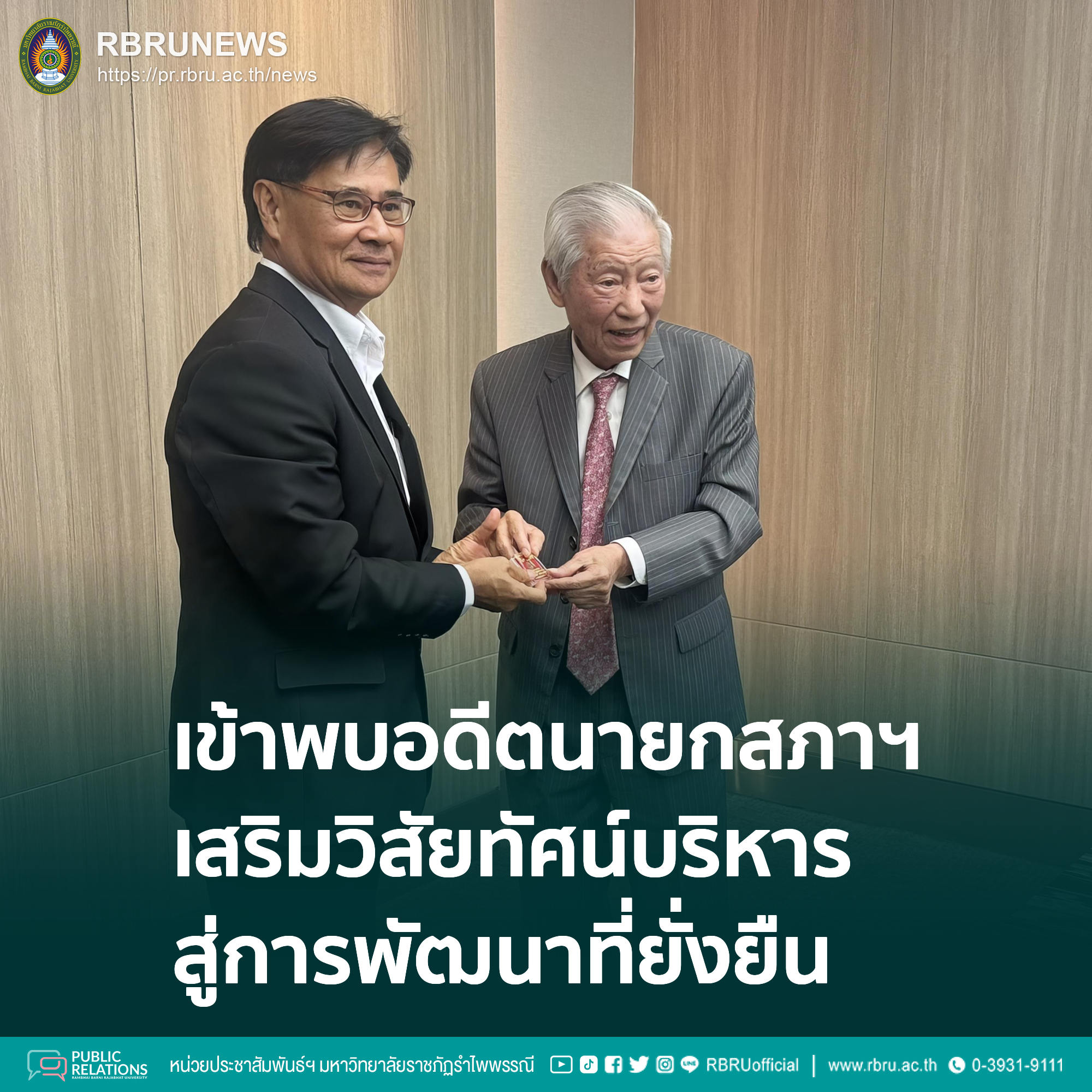 กรุงเทพฯ (2 เมษายน 2569) – รองศาสตราจารย์พอพันธ์ สุทธิวัฒนะ รักษาราชการแทนอธิการบดี มหาวิทยาลัยราชภัฏรำไพพรรณี พร้อมด้วยคณะผู้บริหาร เข้าพบ ดร.อาชว์ เตาลานนท์ อดีตนายกสภามหาวิทยาลัยราชภัฏรำไพพรรณี เพื่อแลกเปลี่ยนทัศนะและรับฟังข้อเสนอแนะในการขับเคลื่อนยุทธศาสตร์มหาวิทยาลัยให้สอดรับกับการเปลี่ยนแปลงของบริบทสังคมและเศรษฐกิจในปัจจุบัน