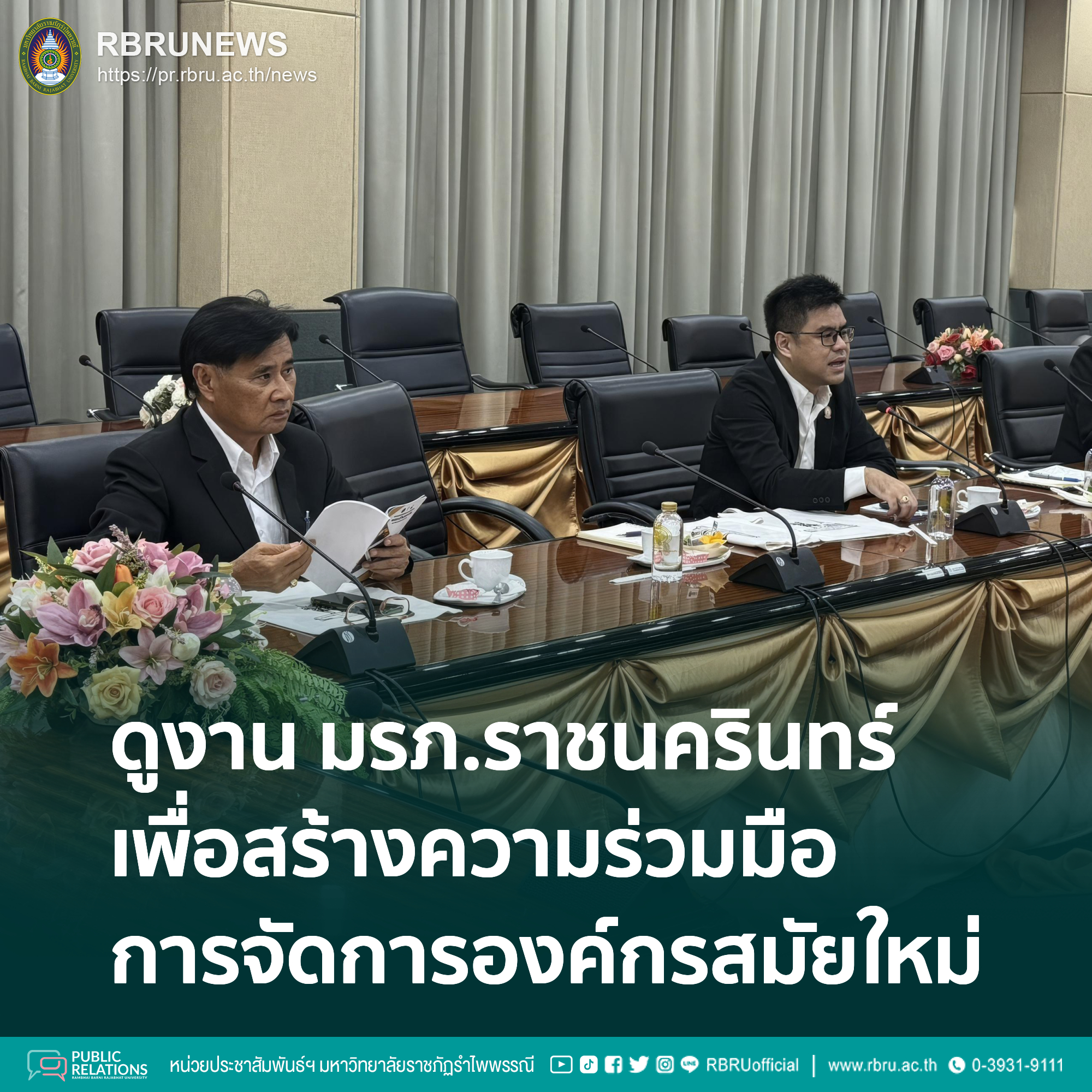 มหาวิทยาลัยราชภัฏราชนครินทร์ จังหวัดฉะเชิงเทรา (2 เมษายน 2569) – คณะผู้บริหารมหาวิทยาลัยราชภัฏรำไพพรรณี เดินทางเข้าศึกษาดูงานและประชุมแลกเปลี่ยนแนวทางการดำเนินงานร่วมกับมหาวิทยาลัยราชภัฏราชนครินทร์ โดยมี ดร.นฤชล เรือนงาม รองอธิการบดีมหาวิทยาลัยราชภัฏราชนครินทร์ ให้การต้อนรับ เพื่อสร้างความร่วมมือในการพัฒนาท้องถิ่นและสืบสานวัฒนธรรม